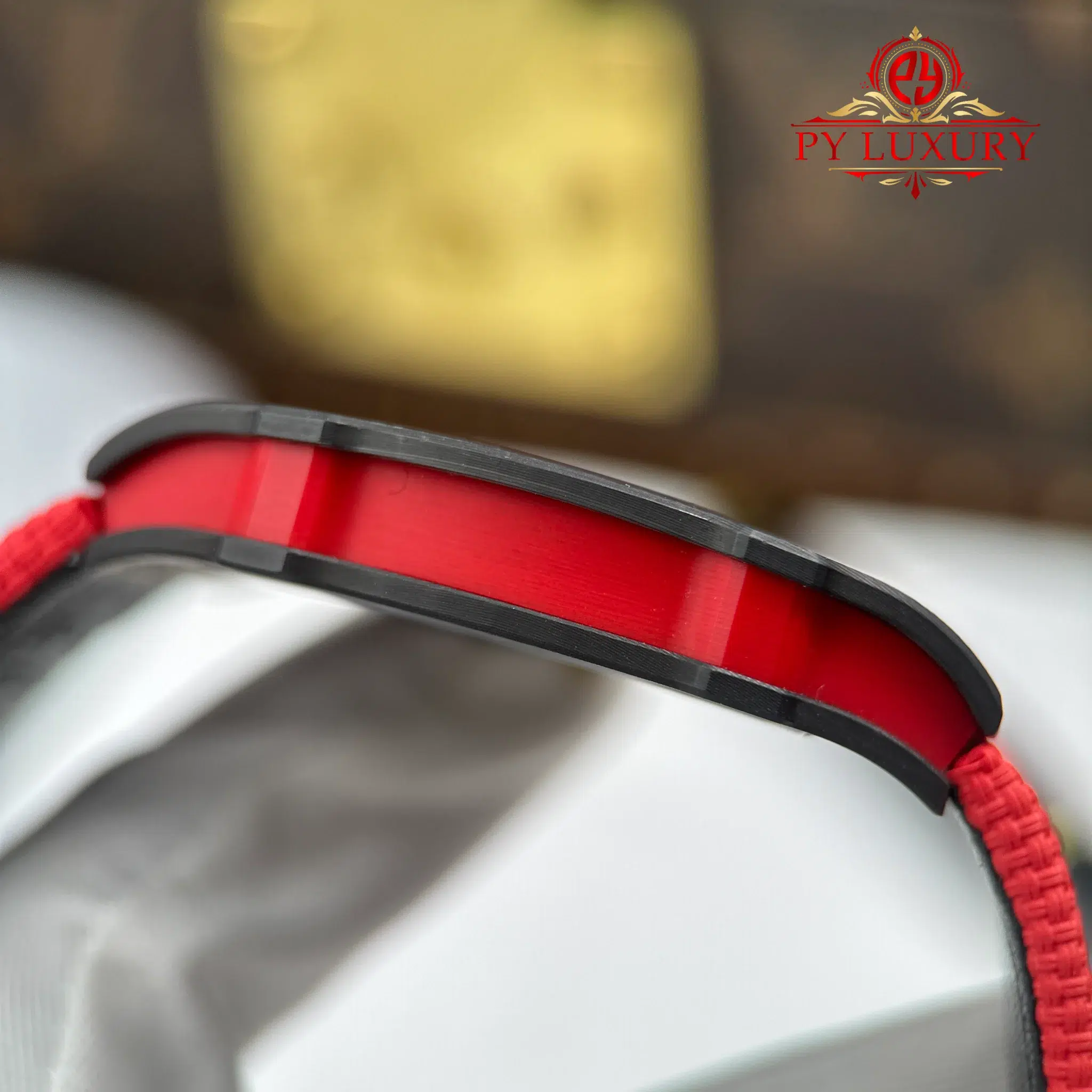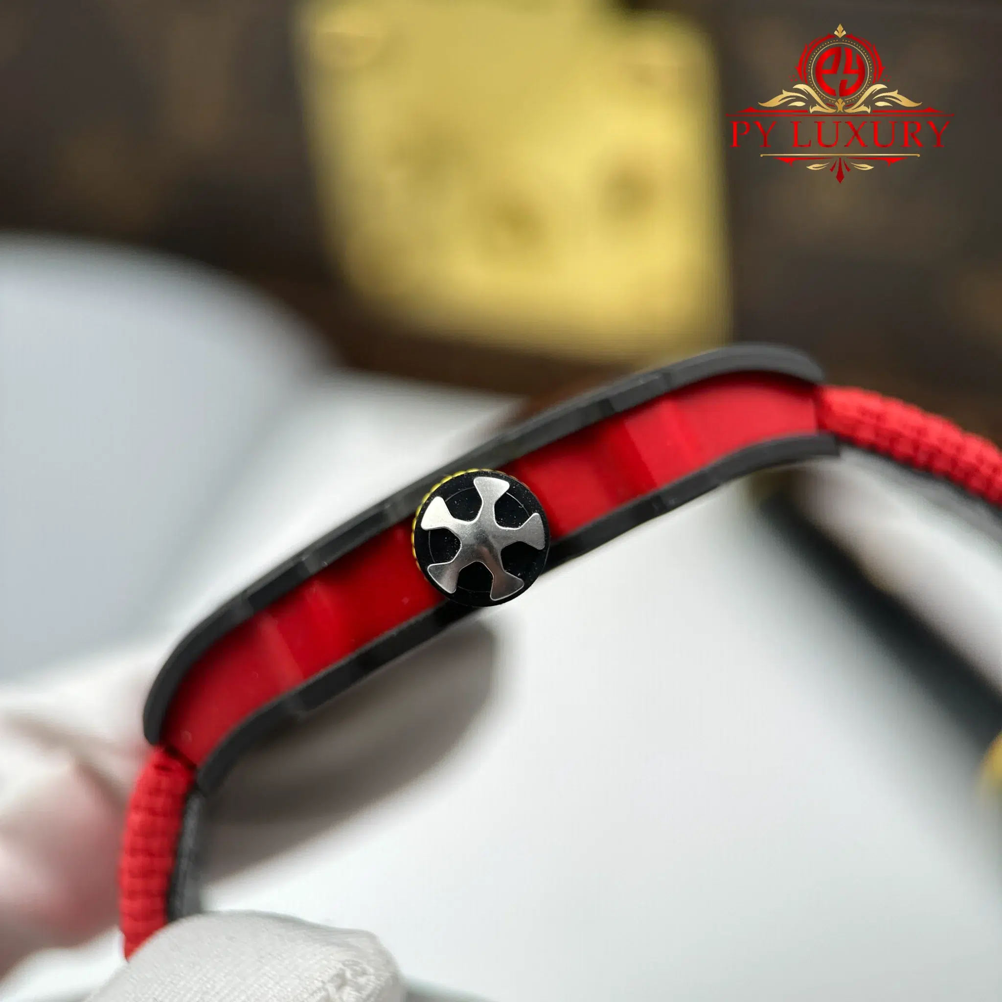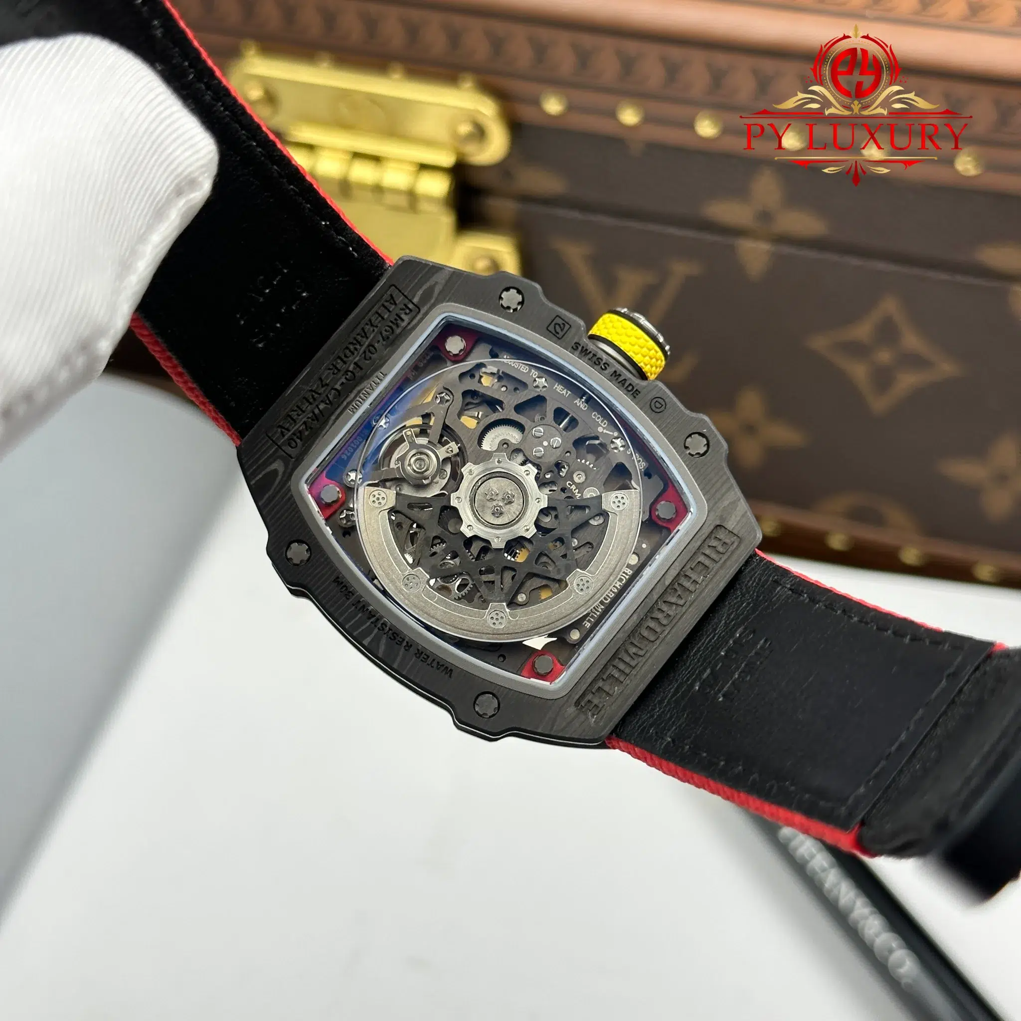 With a case size of 38.7mm x 47.52mm and a thickness of only 7.8mm, the RM67-02 offers an exceptionally lightweight and comfortable feel on the wrist. The black case gives the watch a strong, sporty, and modern appearance, perfect for active individuals.