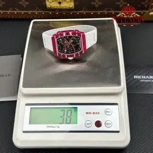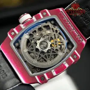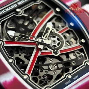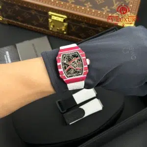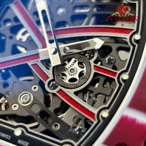 The case of the RM67-02 Mutaz Barshim Quartz TPT 1:1 super clone is crafted from Quartz TPT, a special material known for its impact resistance and high durability. This material also gives the watch a unique aesthetic and vibrant appearance. The compact size and lightweight design make it an ideal choice for both sports activities and everyday use.