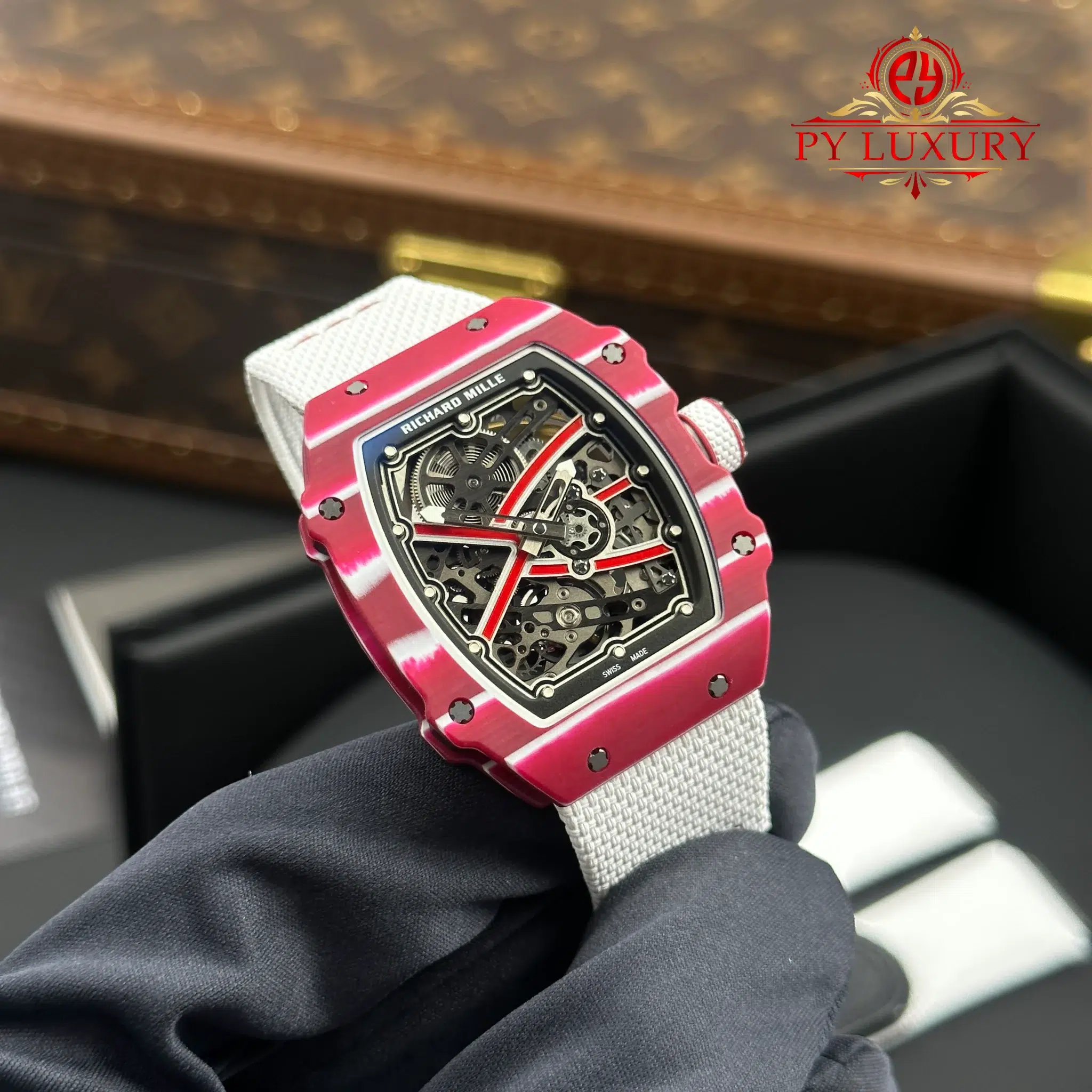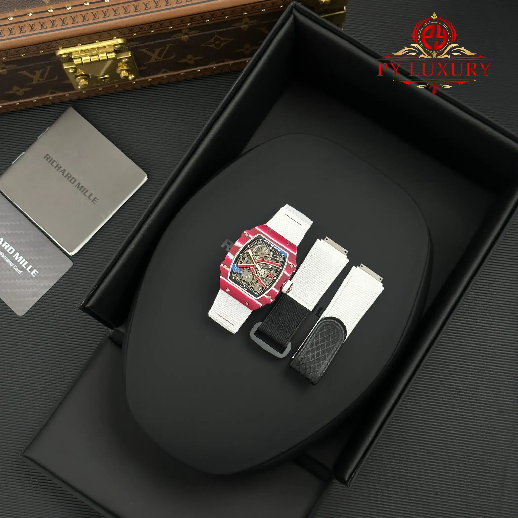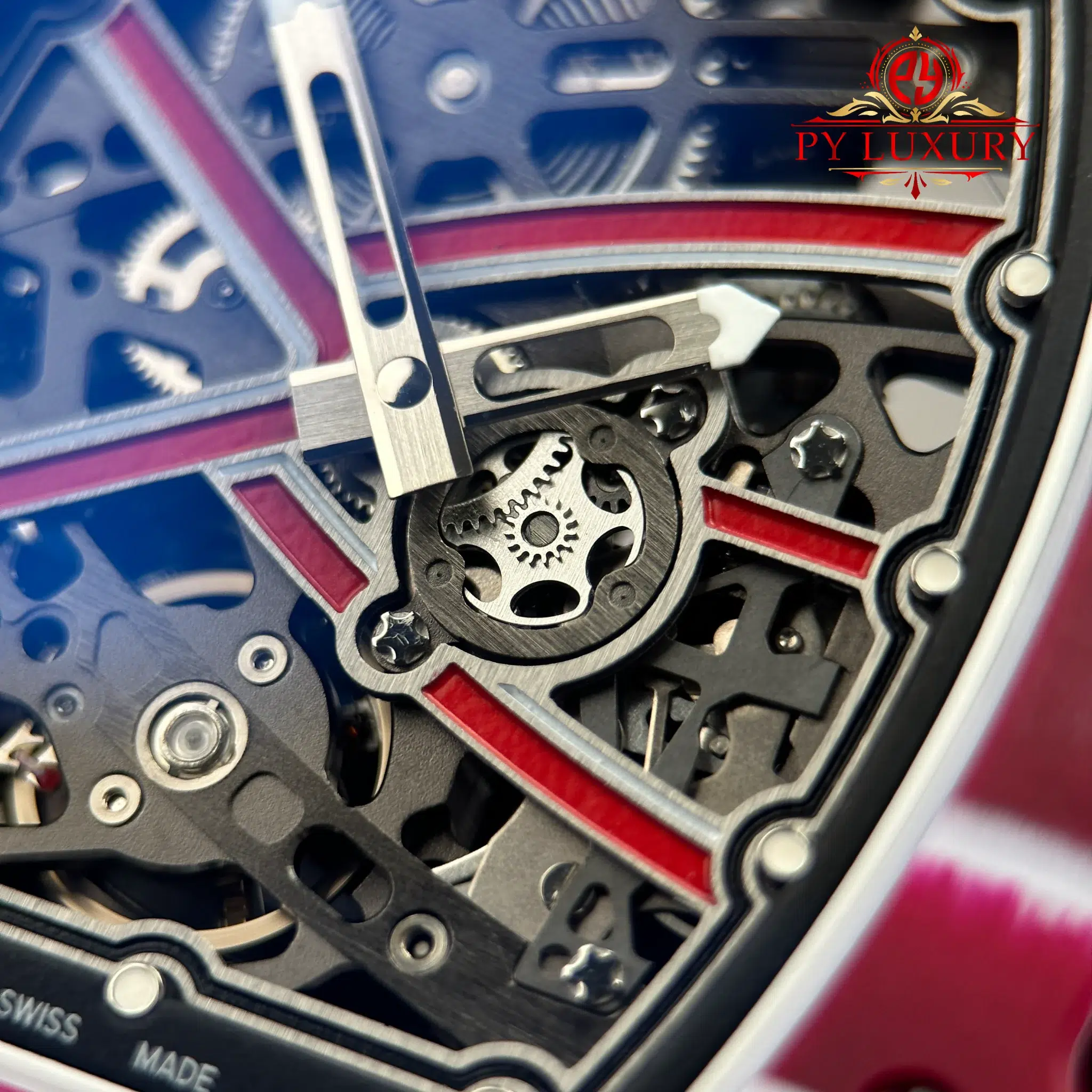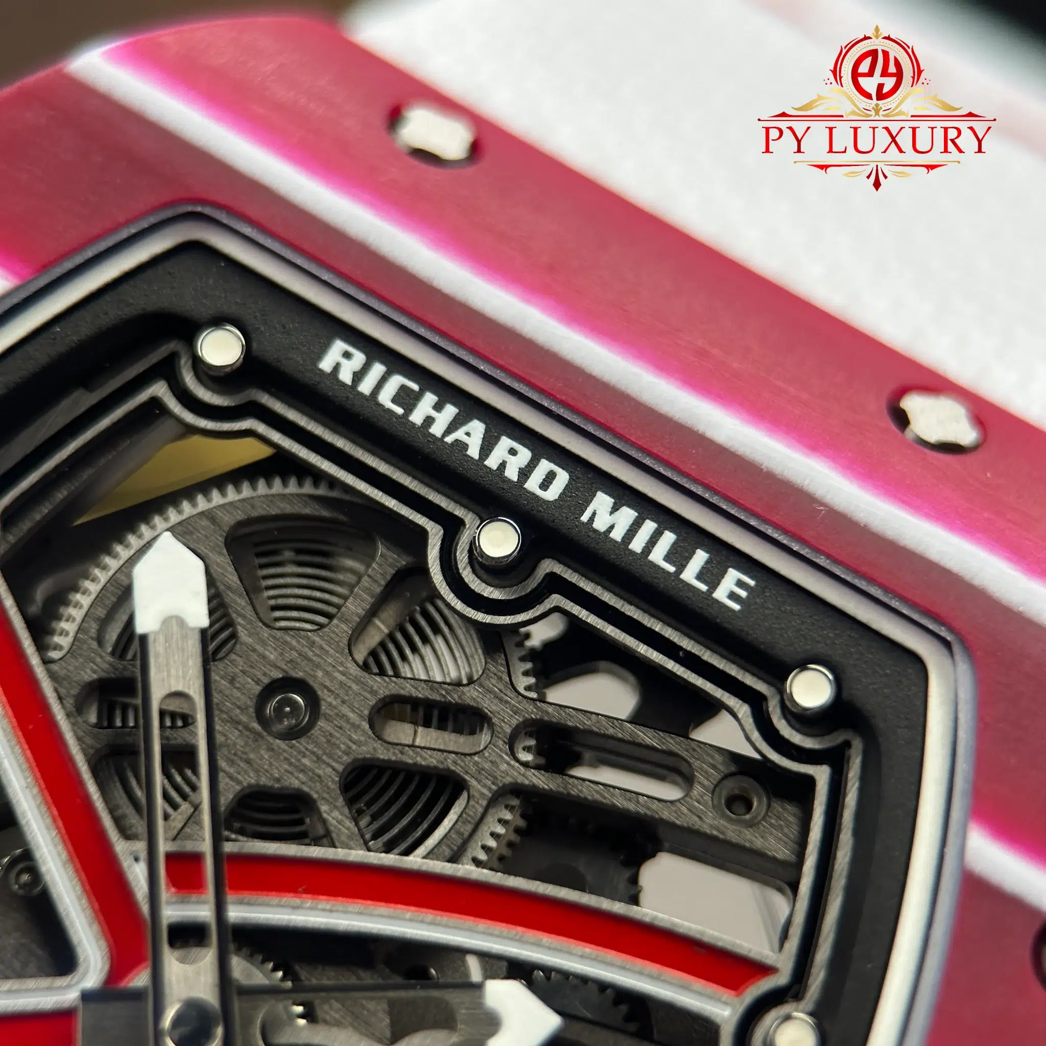 The case of the RM67-02 Mutaz Barshim Quartz TPT 1:1 super clone is crafted from Quartz TPT, a special material known for its impact resistance and high durability. This material also gives the watch a unique aesthetic and vibrant appearance. The compact size and lightweight design make it an ideal choice for both sports activities and everyday use.