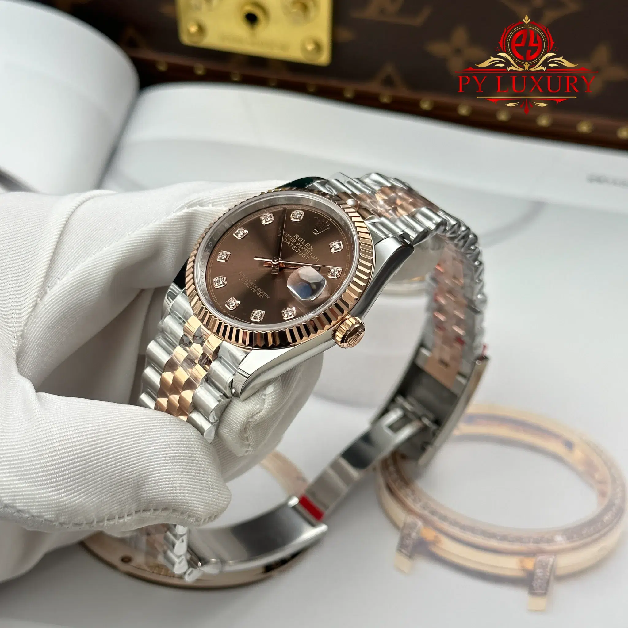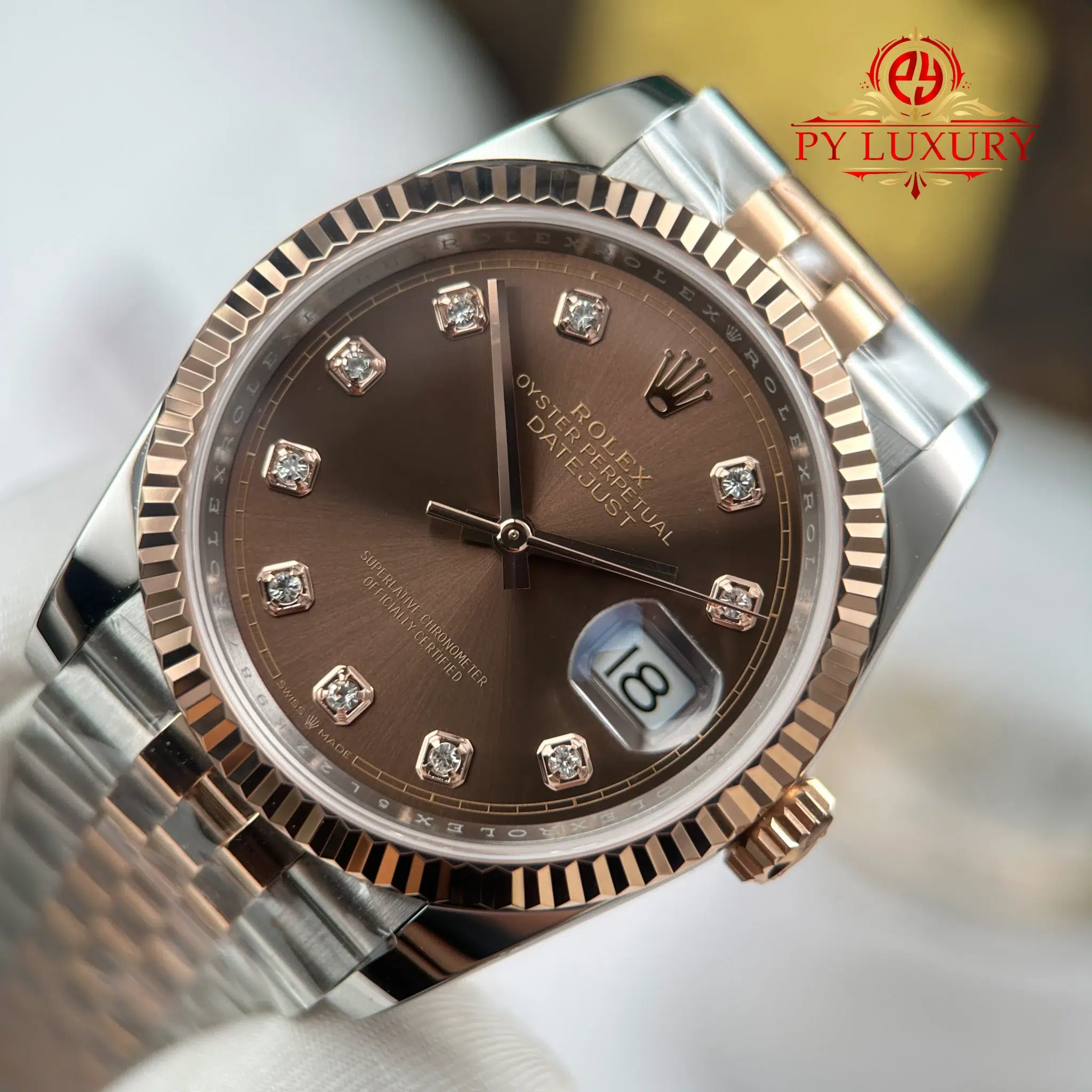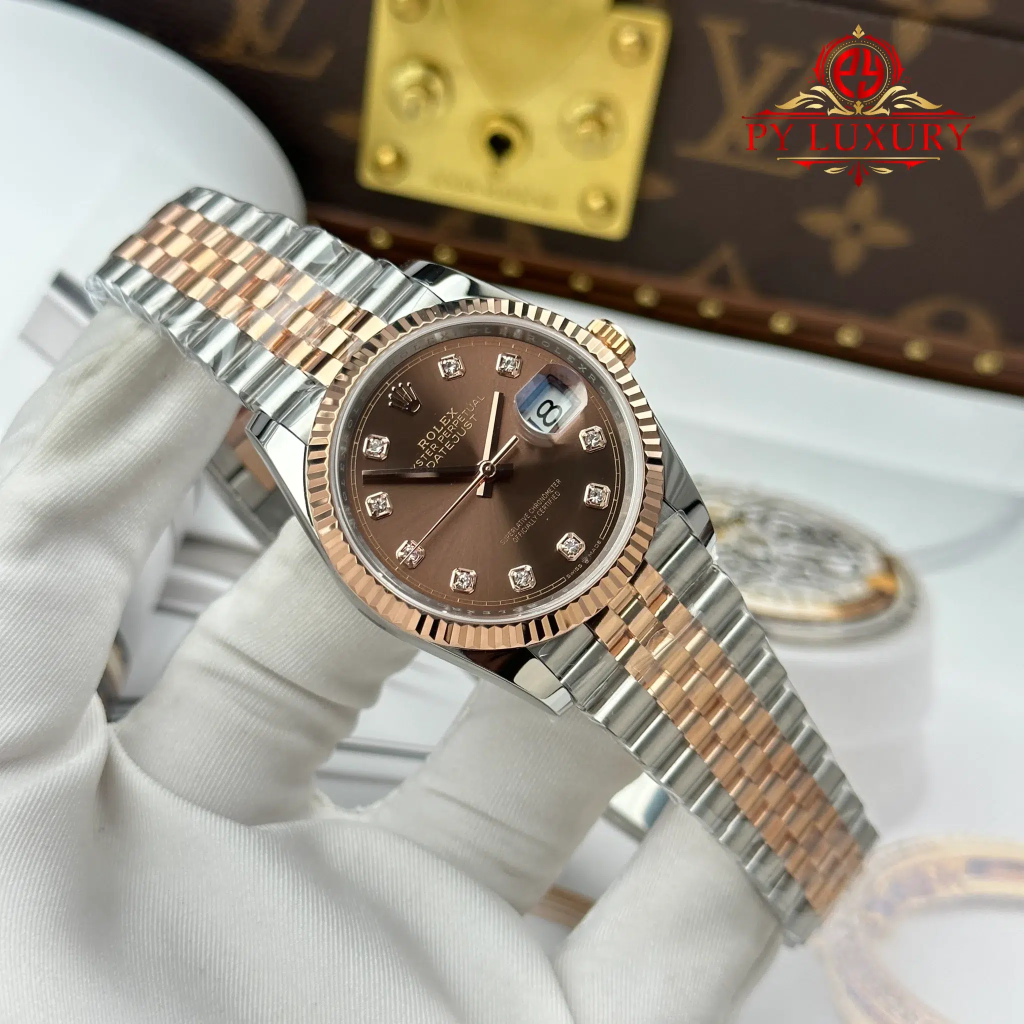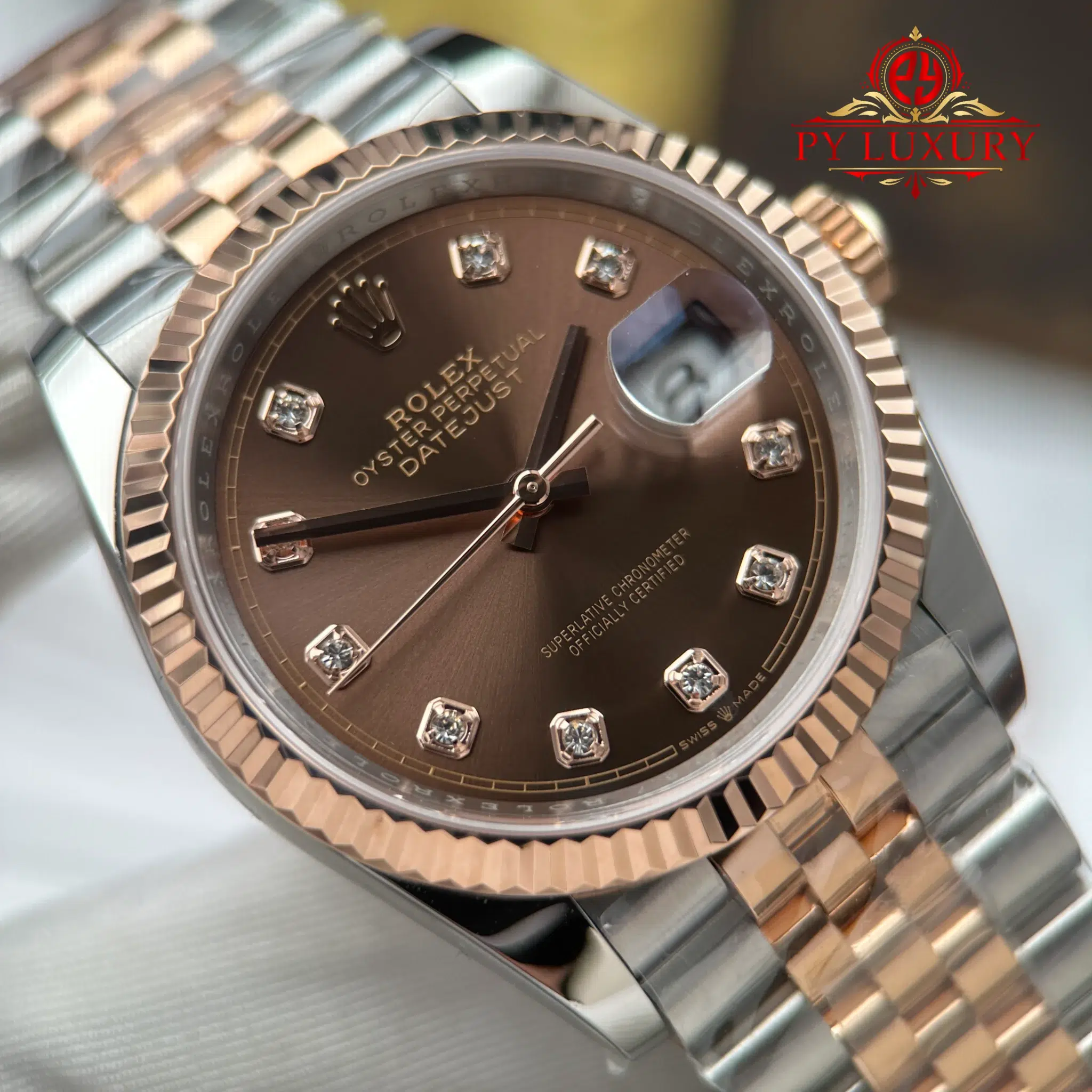 Rolex Datejust 126231 Steel & Rose Gold Chocolate Diamond Dial Jubilee Bracelet Best Replica 36mm