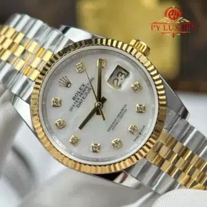 Video of the Rolex Datejust 126233-0023 Steel & Yellow Gold White Mother of Pearl Diamond Dial Jubilee Bracelet Best Replica 36mm from AR Factory at Py-Luxury: