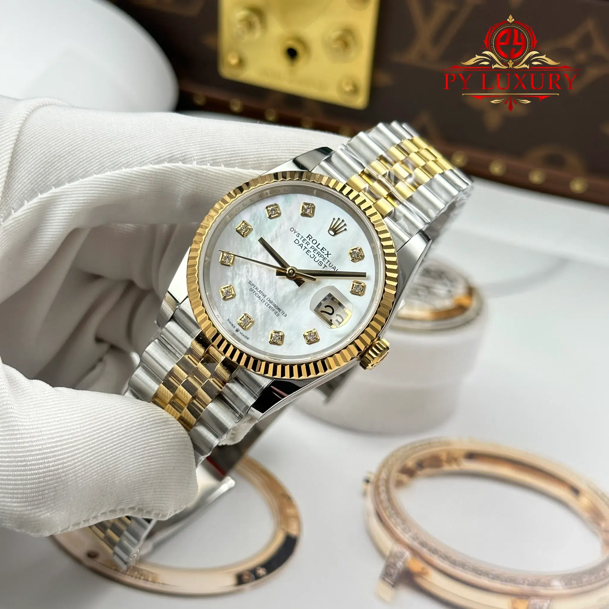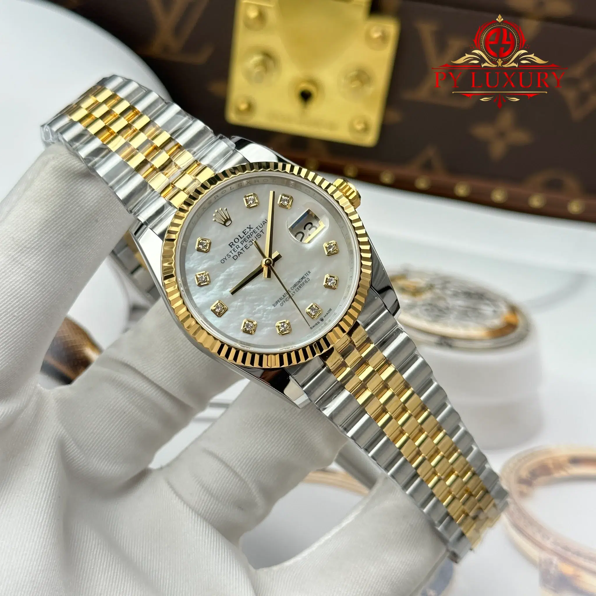 Video of the Rolex Datejust 126233-0023 Steel & Yellow Gold White Mother of Pearl Diamond Dial Jubilee Bracelet Best Replica 36mm from AR Factory at Py-Luxury: