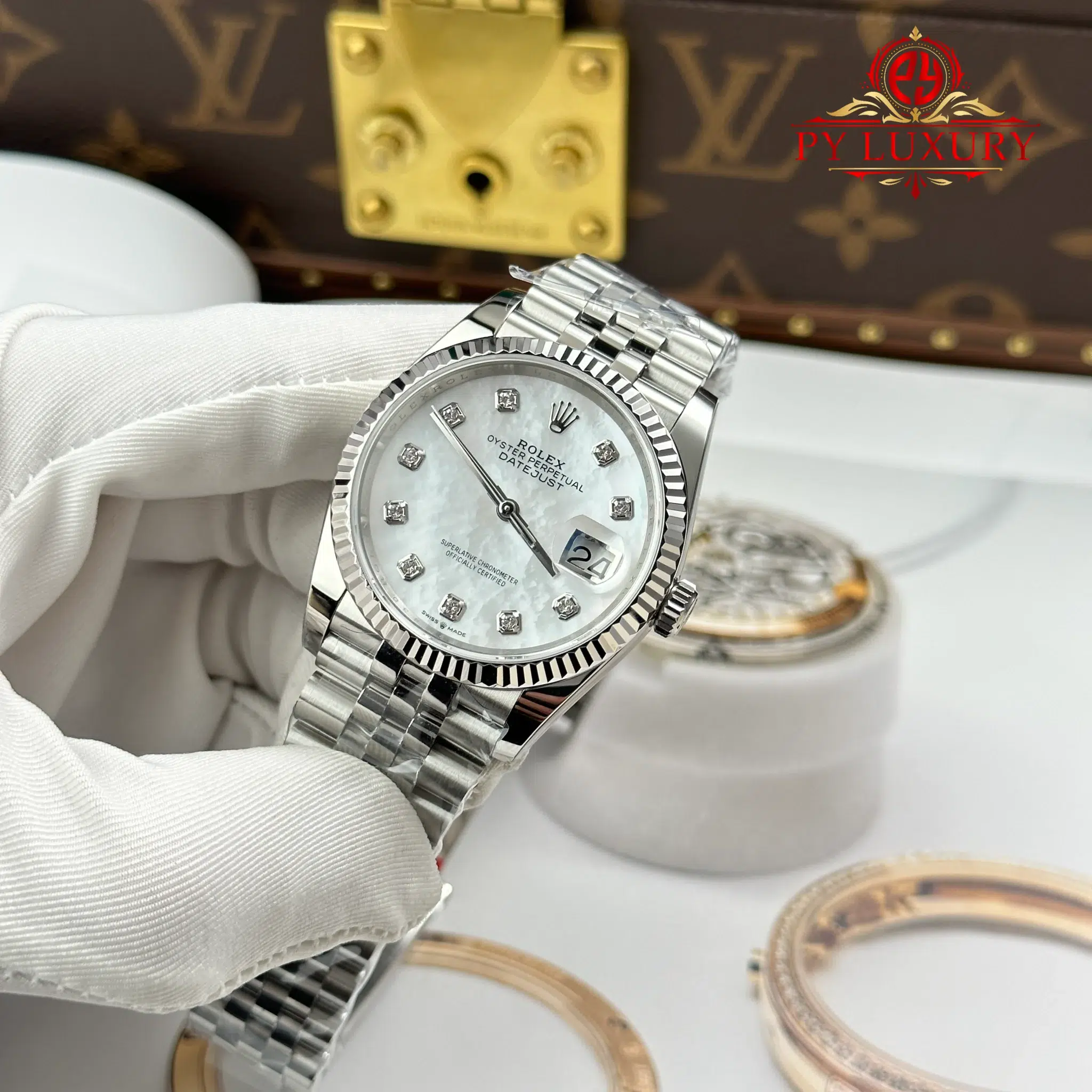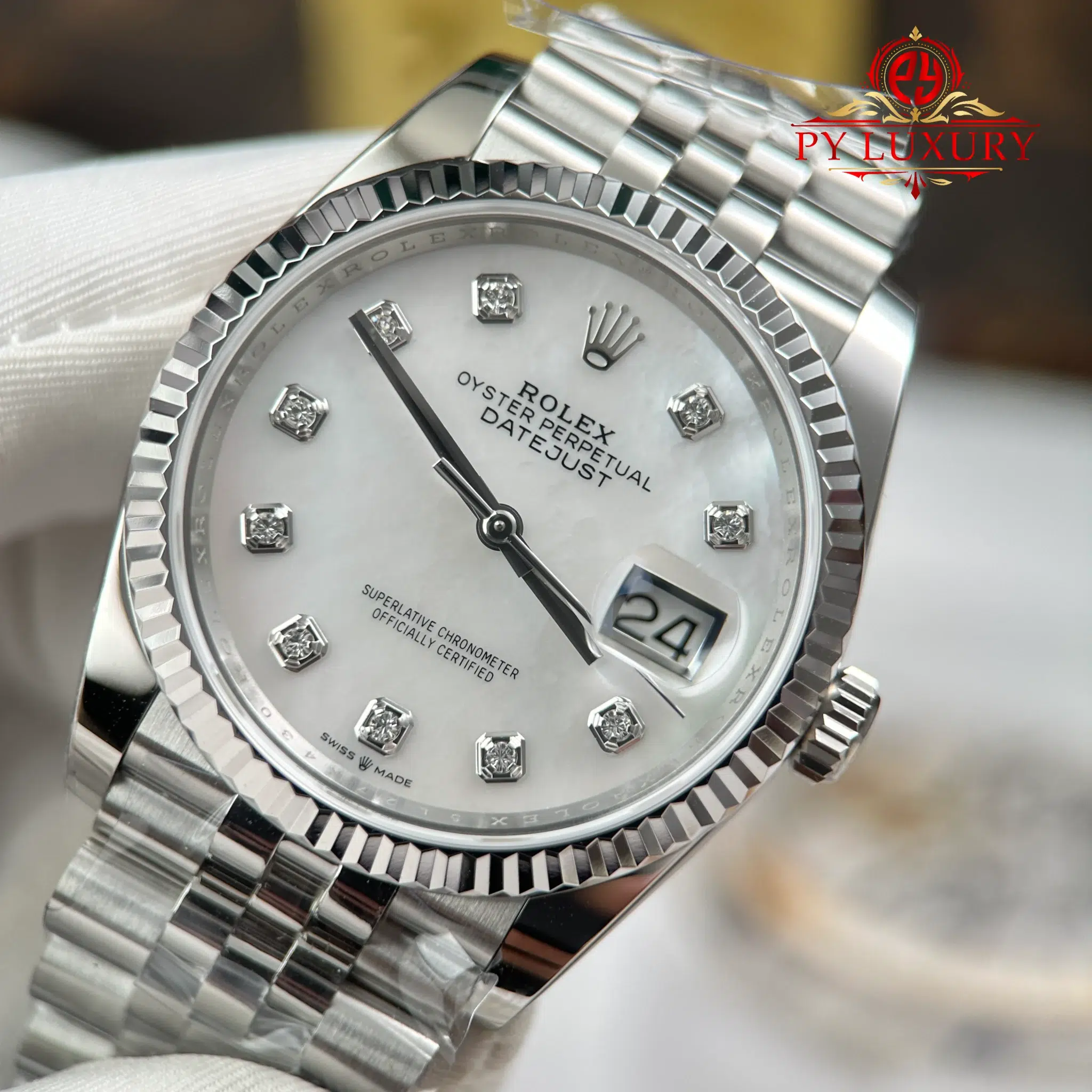 Video of the Rolex Datejust 126234-0019 MOP Diamond Dial Jubilee Bracelet Best Replica 36mm from AR Factory at Py-Luxury: