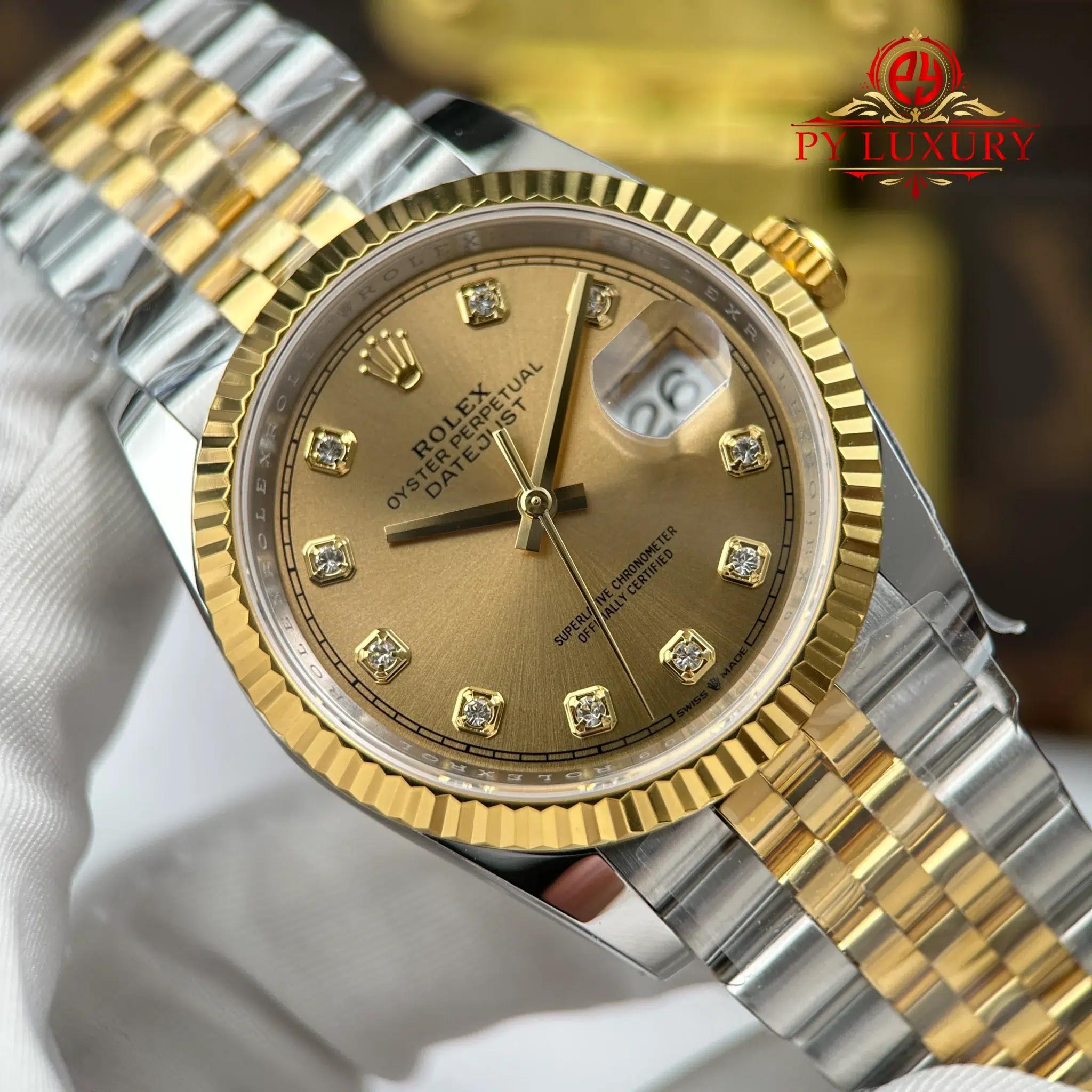 Rolex Datejust 126333 Steel Yellow Gold Champagne Diamond Dial Jubilee Bracelet Best Replica 36mm