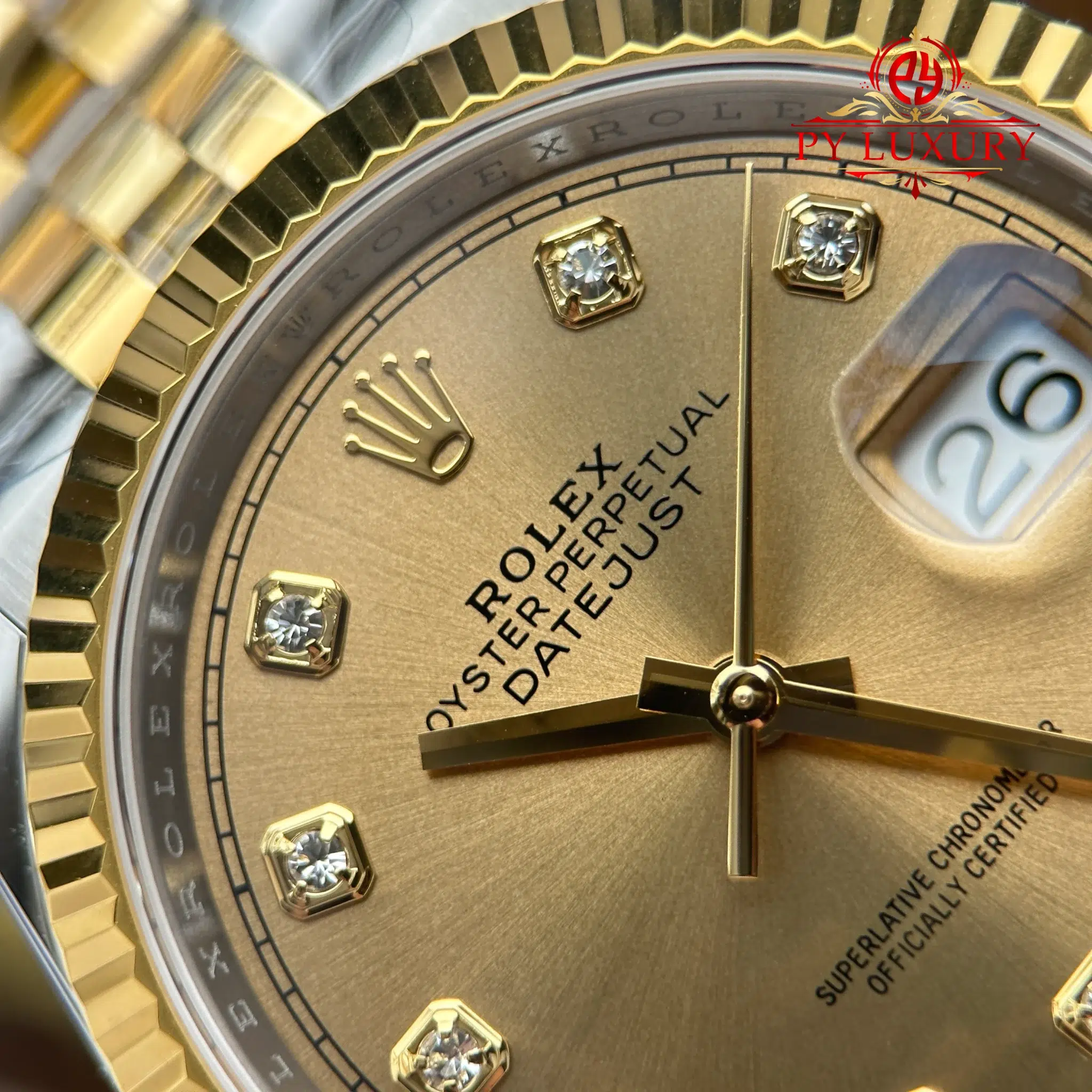 Video of the Rolex Datejust 126333 Steel Yellow Gold Champagne Diamond Dial Jubilee Bracelet Best Replica 36mm from AR factory at Py-Luxury: