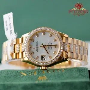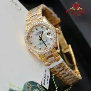 Rolex Datejust Lady 18K Yellow Gold Plated Custom Natural MOP Dial Moissanite Bezel Moissanite Bracelet 31mm