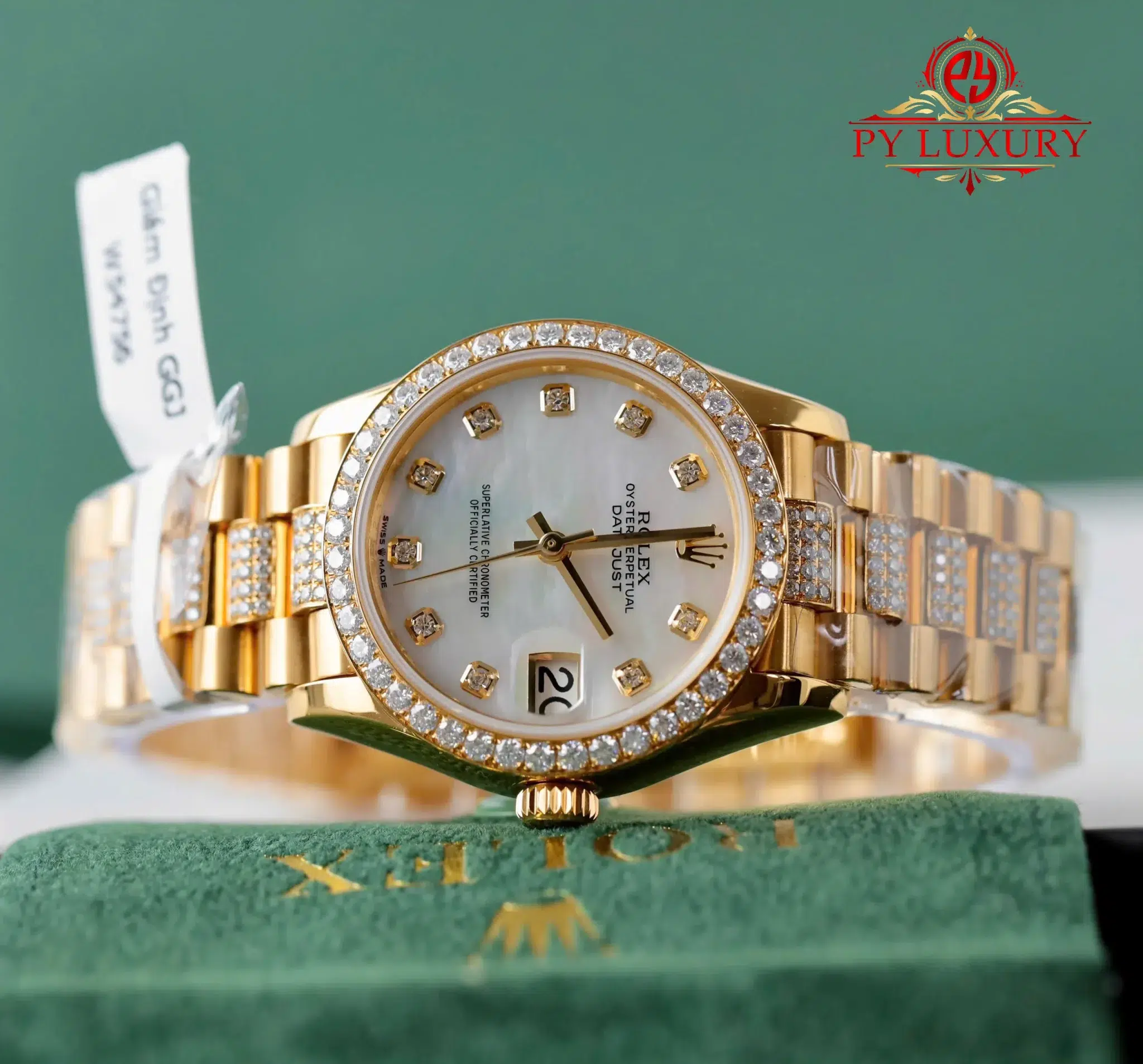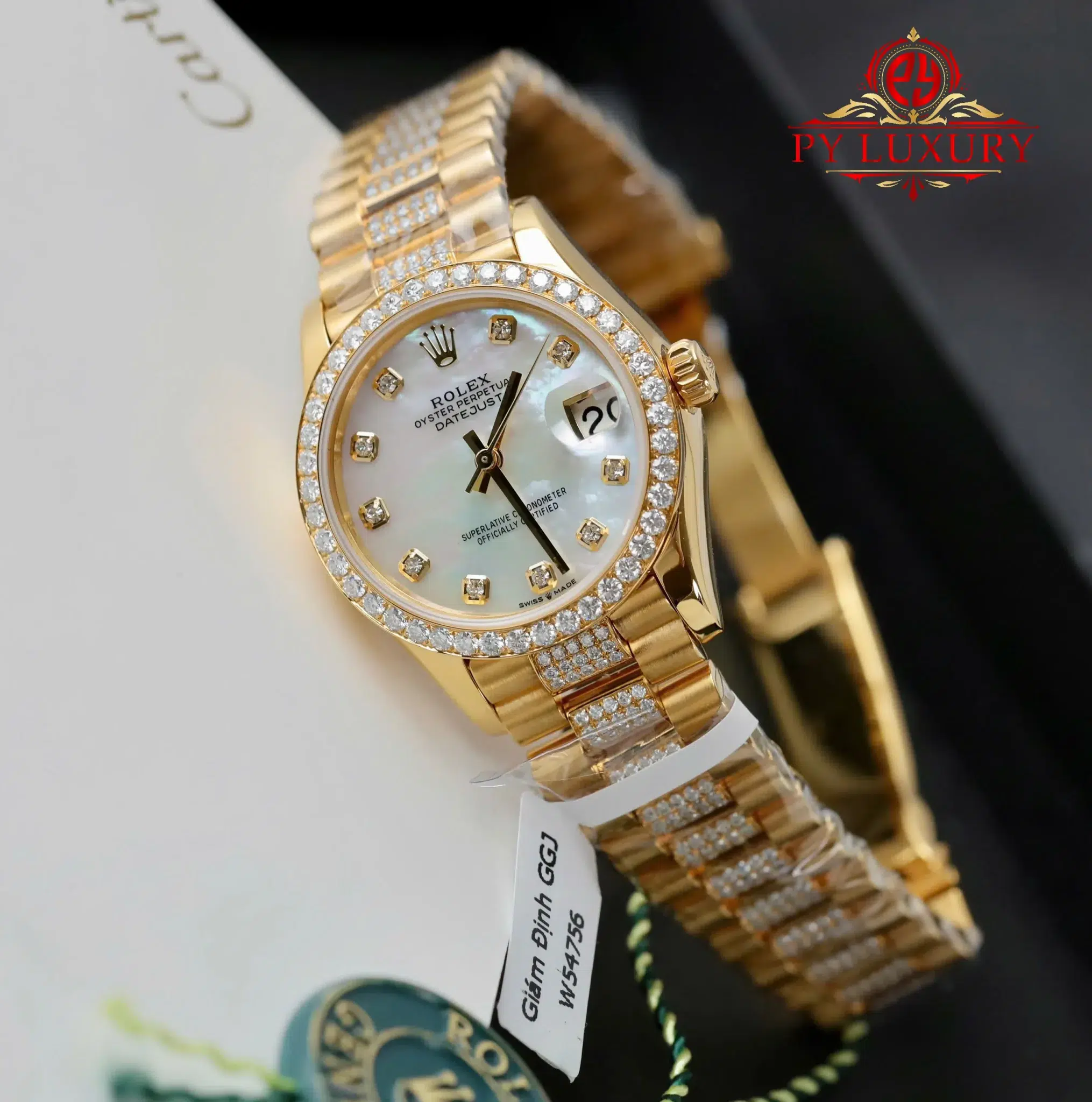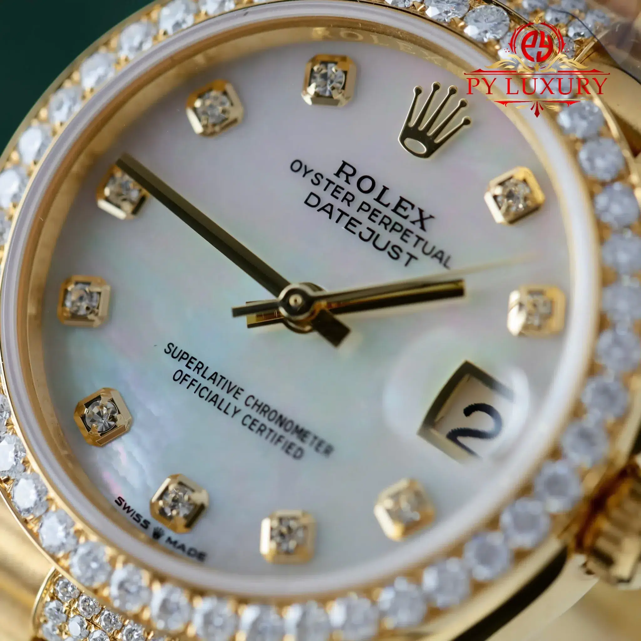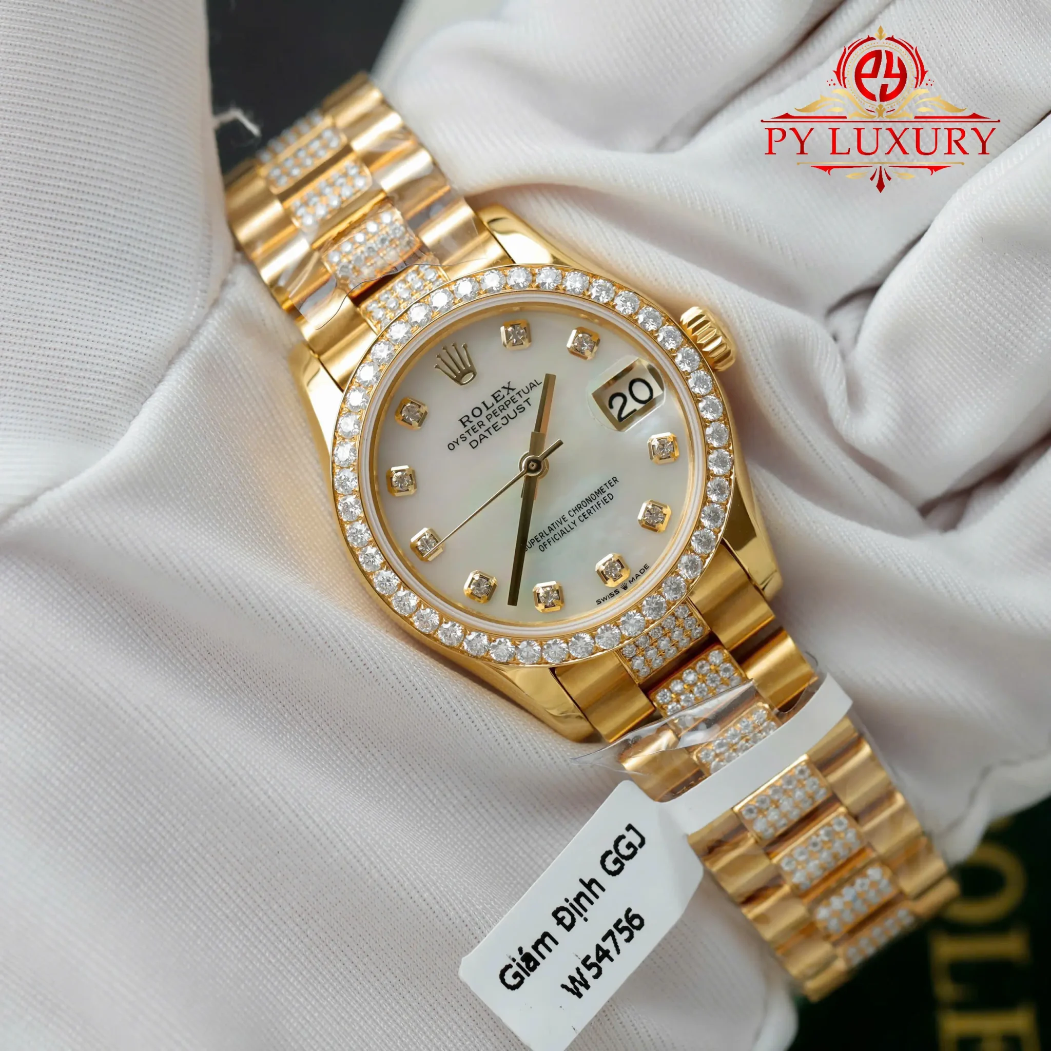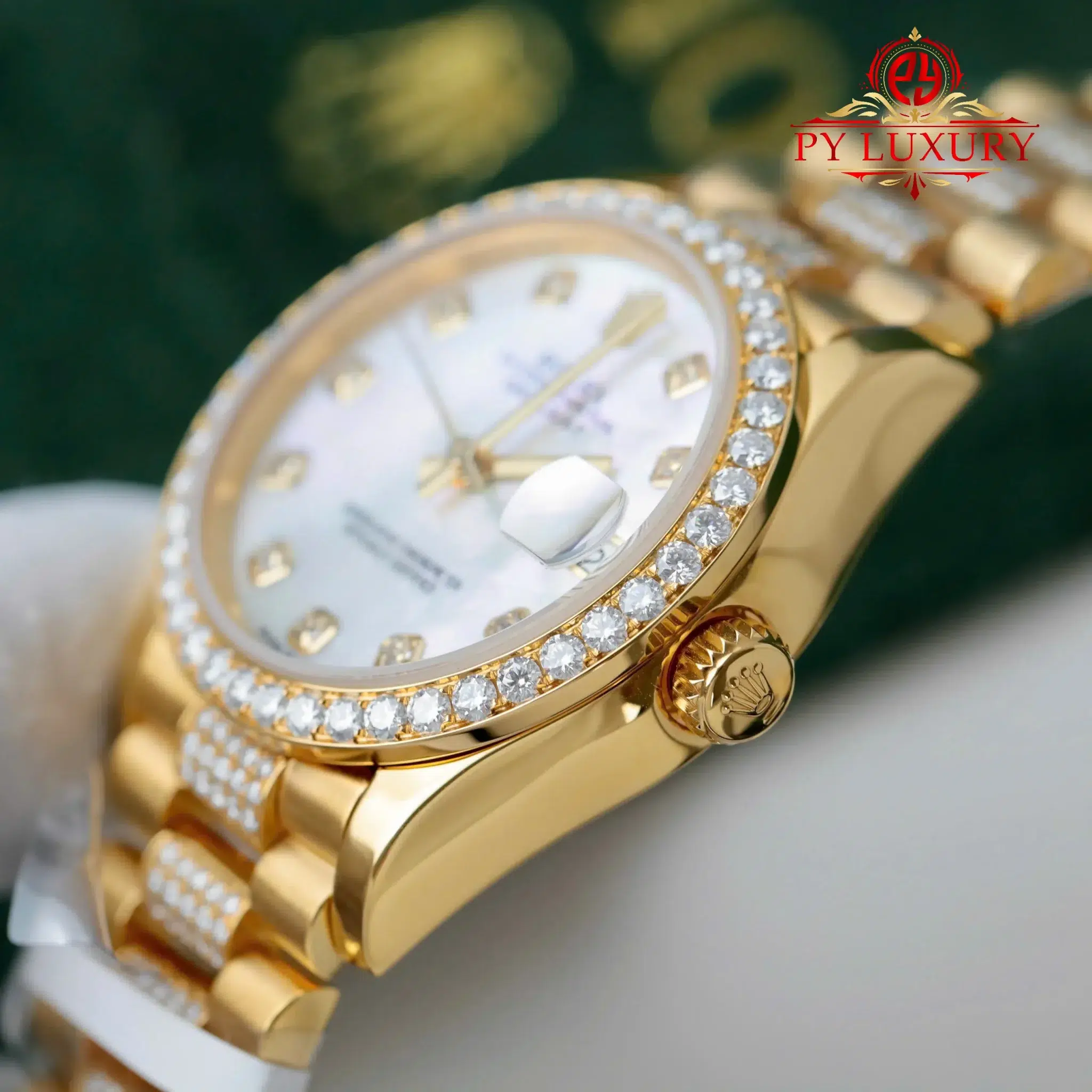 Rolex Datejust Lady 18K Yellow Gold Plated Custom Natural MOP Dial Moissanite Bezel Moissanite Bracelet 31mm