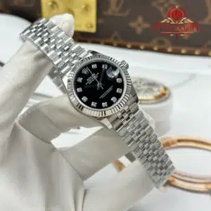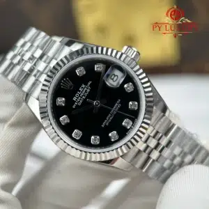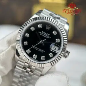 Rolex Datejust Lady Black Diamond Dial Fluted Bezel Jubilee Bracelet Best Replica 31mm
