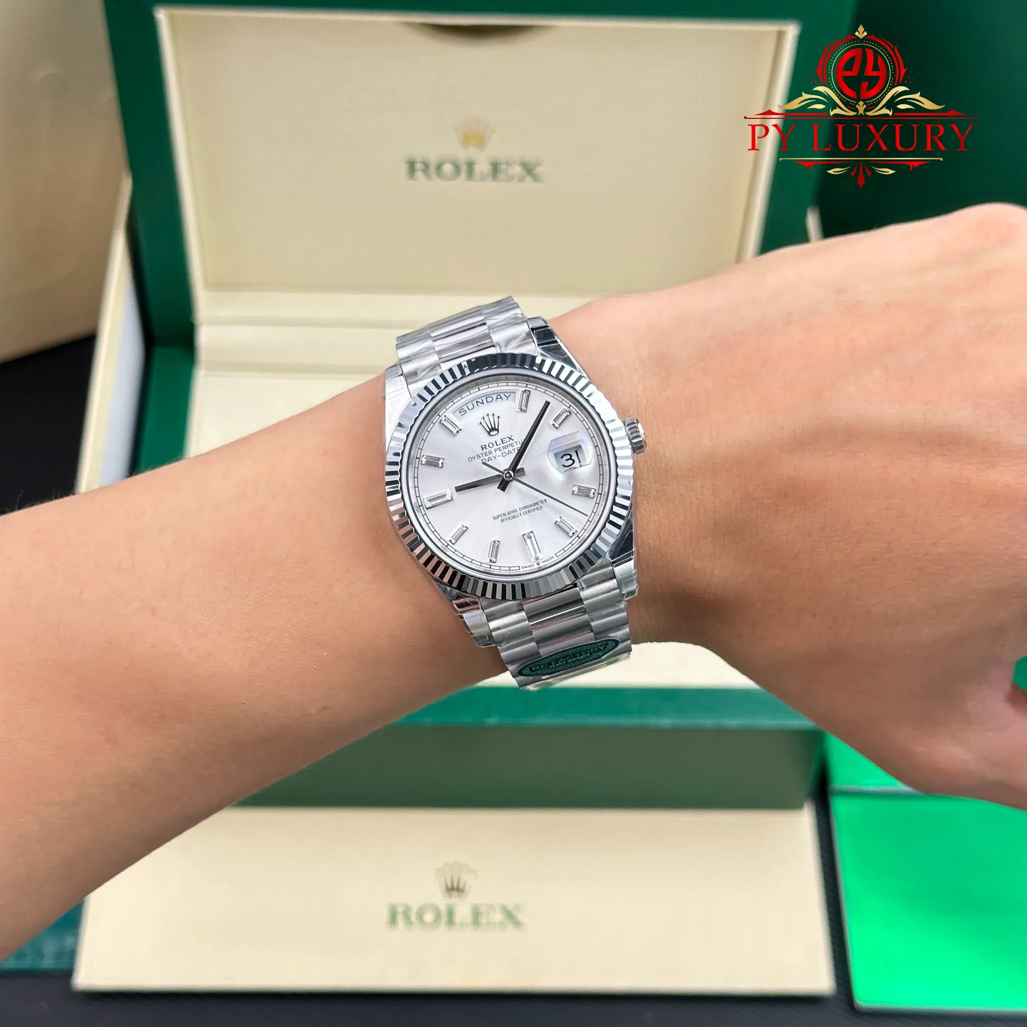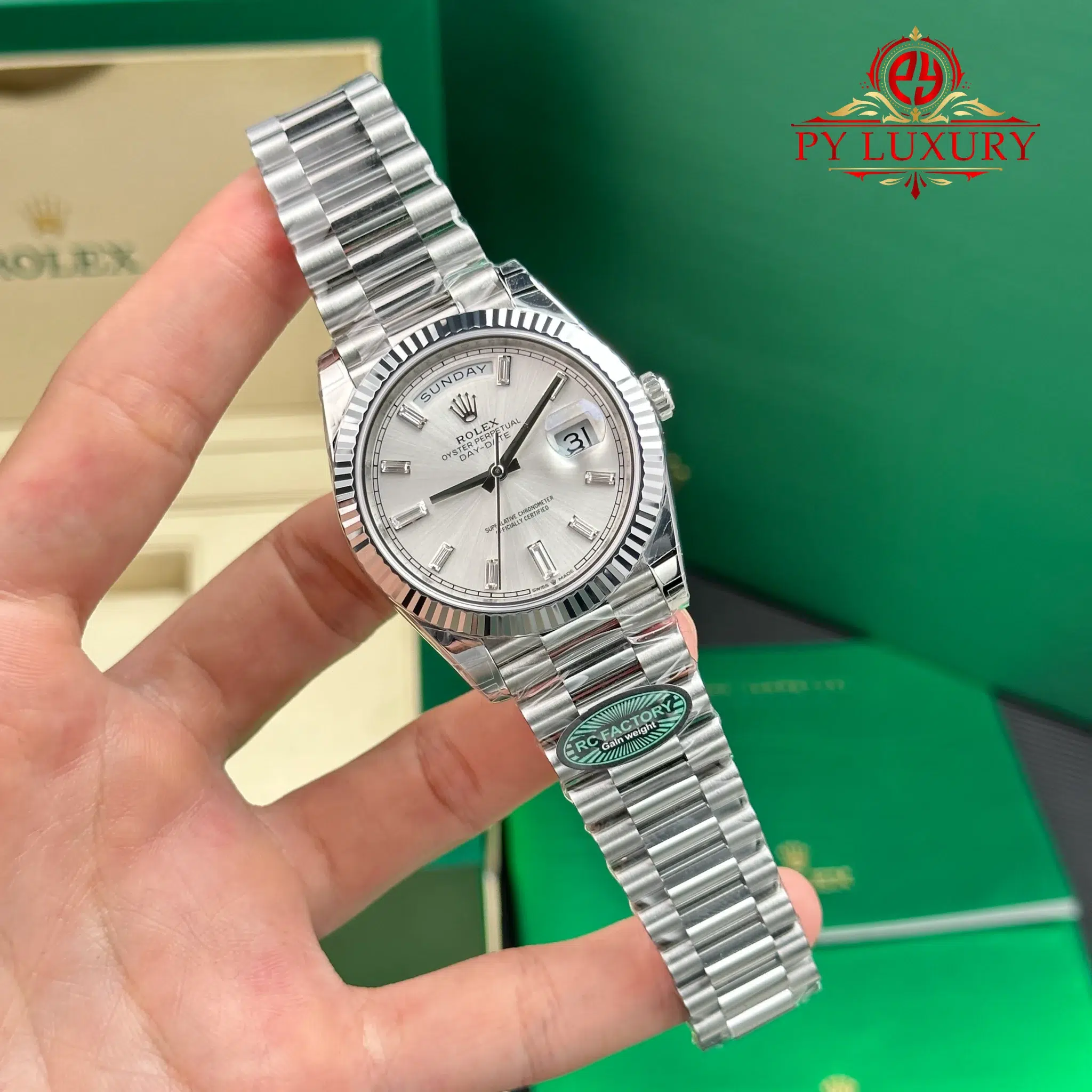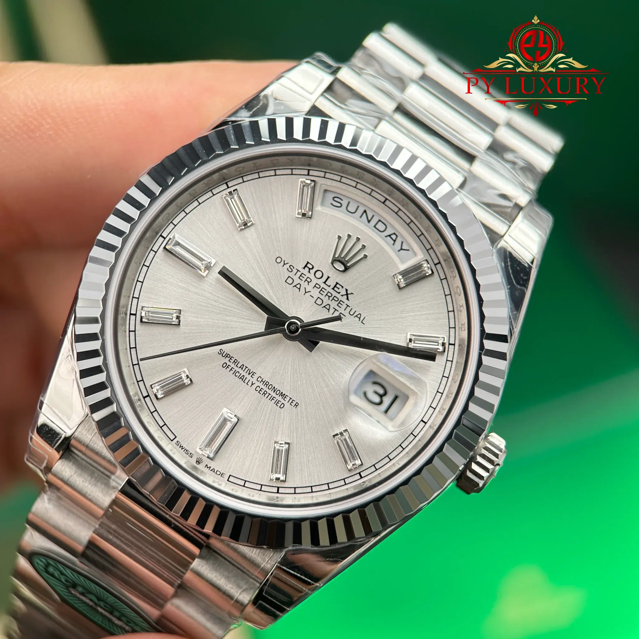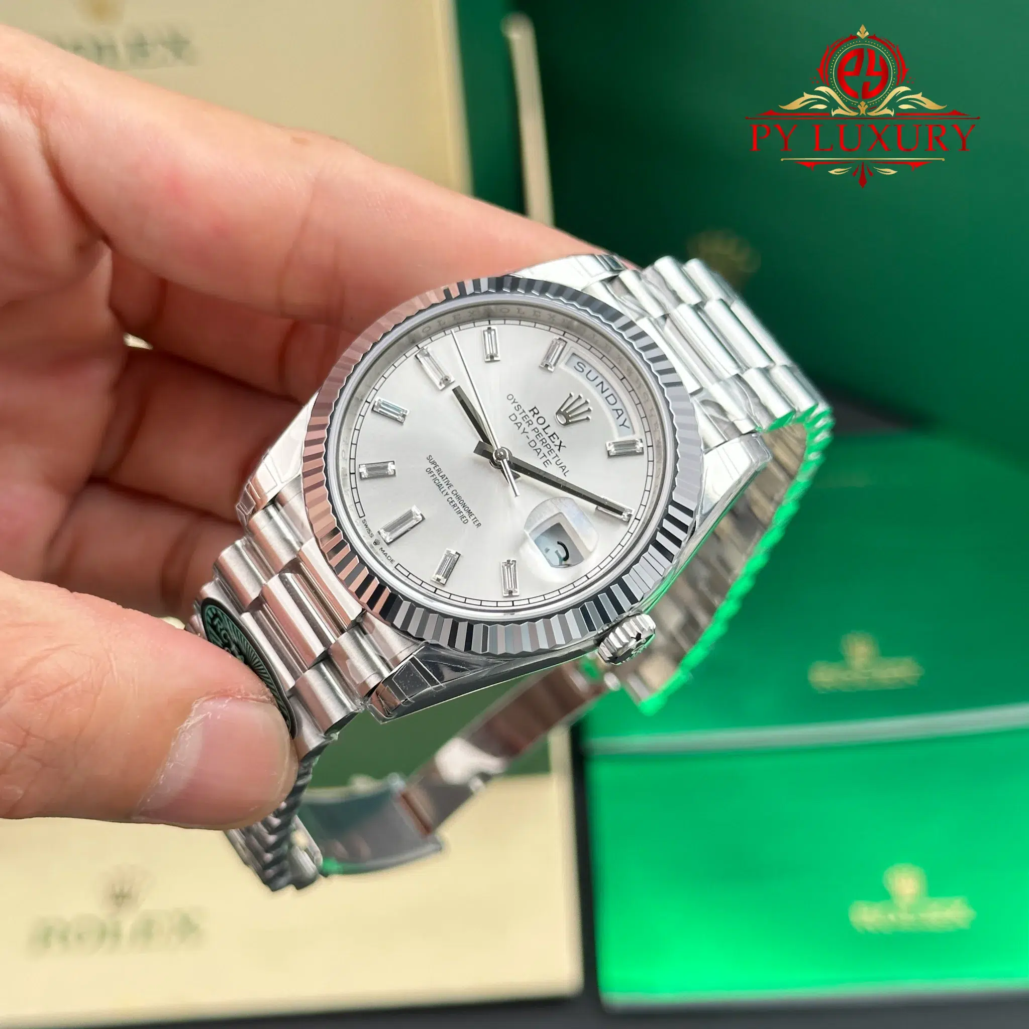 Rolex Day-Date 228236 Silver Baguette Dial Super Clone Gained Weight 210g RCF 40mm