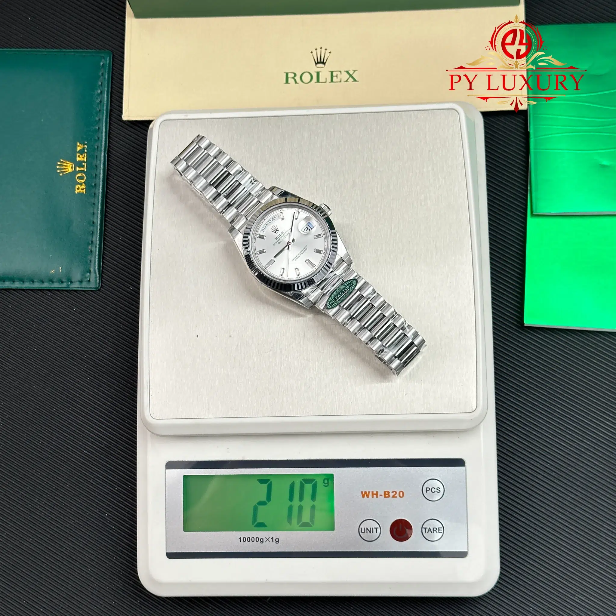 Video of the Rolex Day-Date 228236 Silver Baguette Dial Super Clone Gained Weight 210g from RC Factory at Py-Luxury: