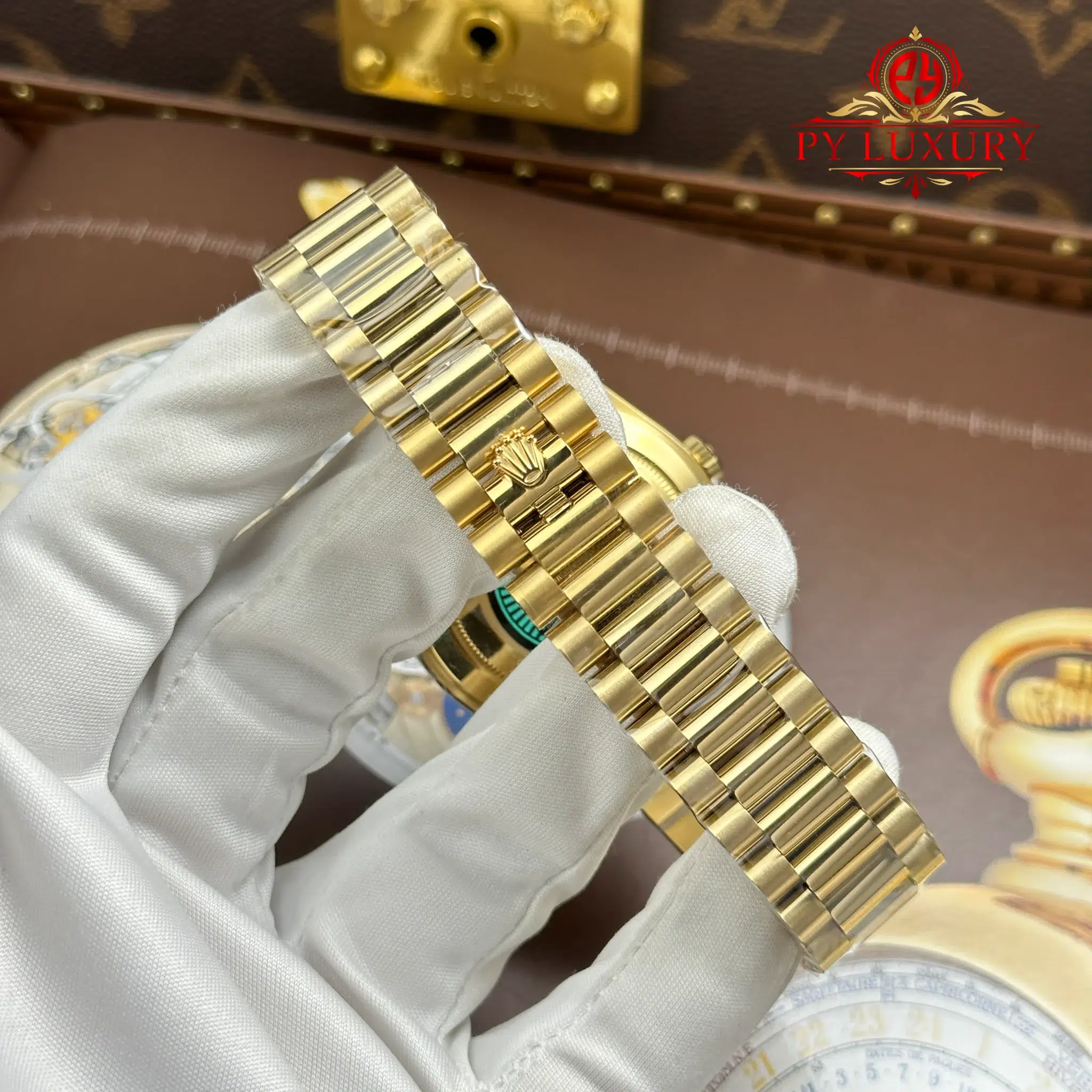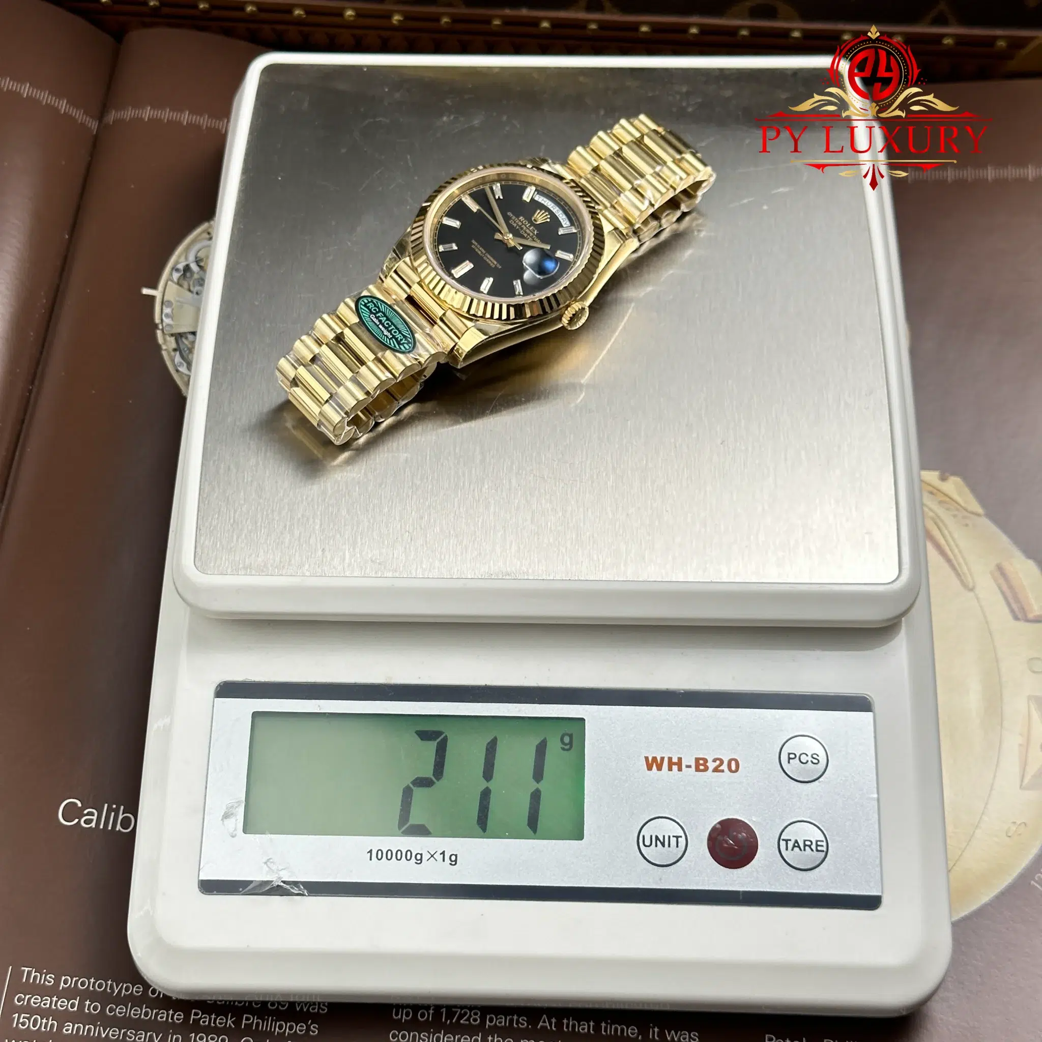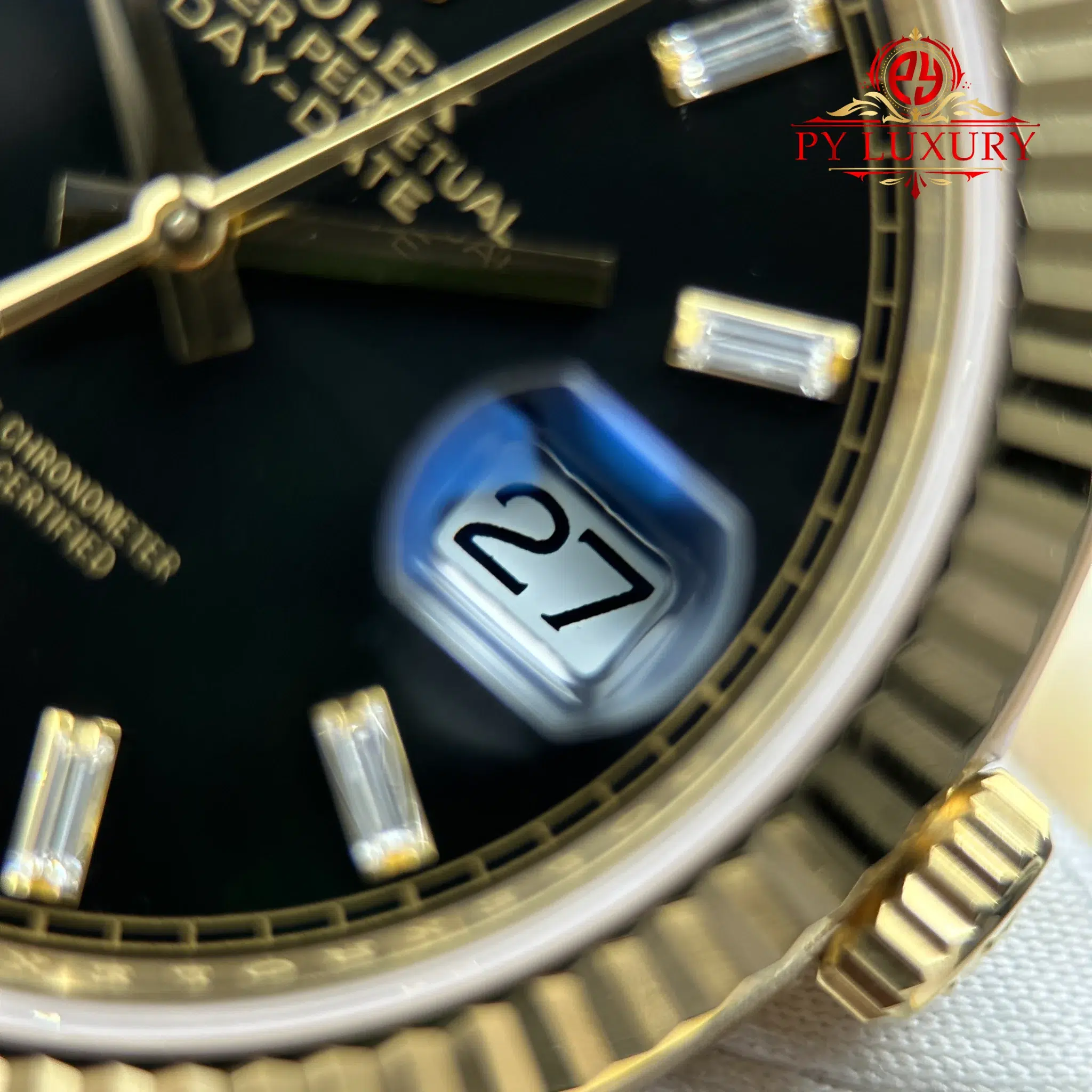 Video of the Rolex Day-Date 228238-0004 Yellow Gold Black Baguette Dial 1:1 Top Quality Replica 210g from RC Factory at Py-Luxury: