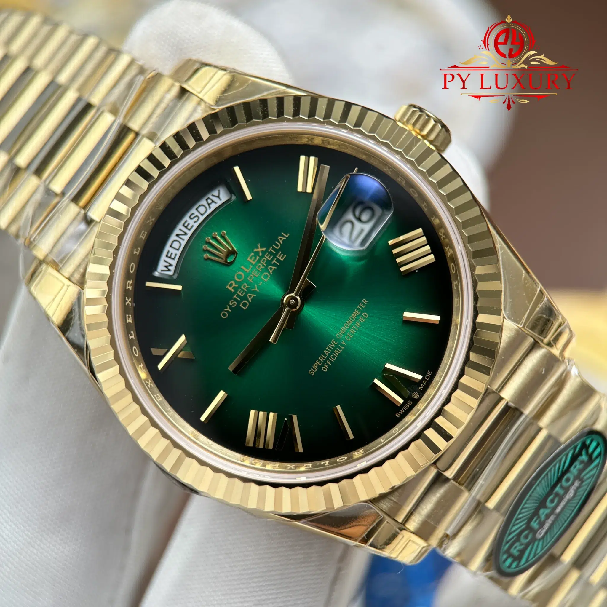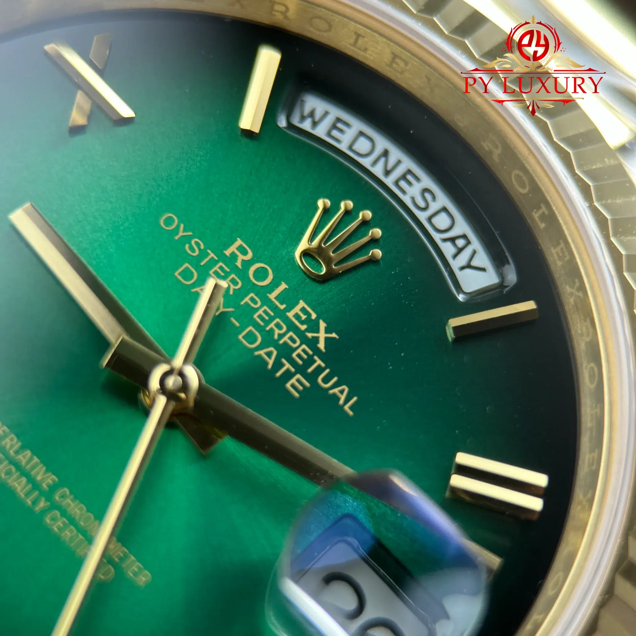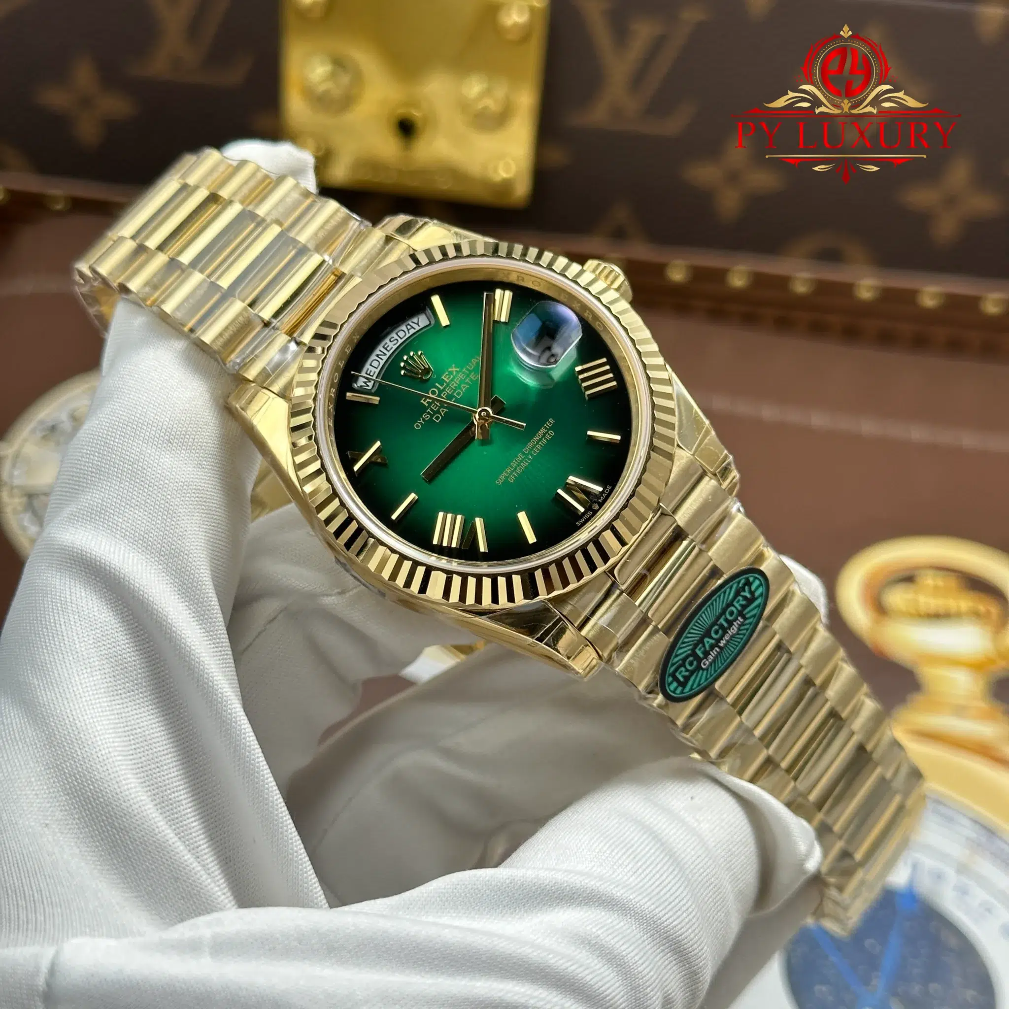 Video of the Rolex Day-Date 228238-0069 Yellow Gold Green Ombré Dial Super Clone Top Quality 210g from RC Factory at Py-Luxury:
