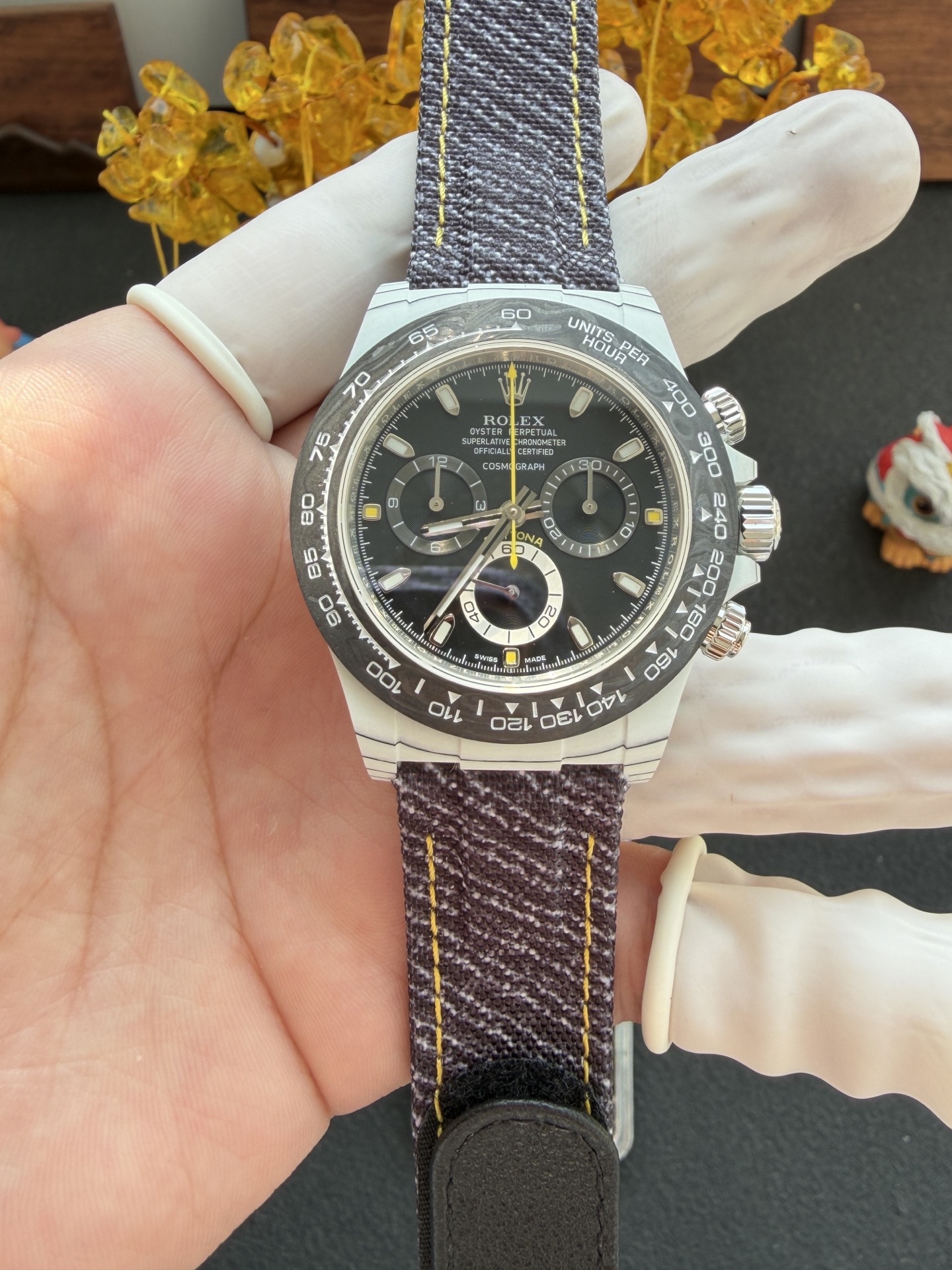 Rolex Daytona DiW STRIKER CarboQuartz Black Dial Nylon Strap Best Replica 40mm