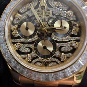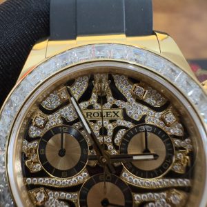 Video of the Rolex Daytona Eye of the Tiger 116588TBR Custom 18K Yellow Gold Plated & Moissanite 1:1 Super Clone 40mm at Py-Luxury: