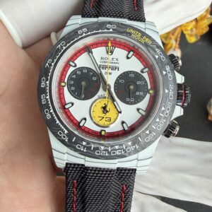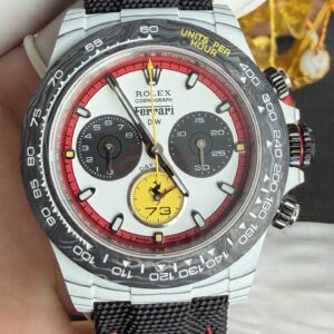 Rolex DiW Daytona Ferrari Edition RT White Quartz TPT Black Carbon Bezel Super Clone 40mm