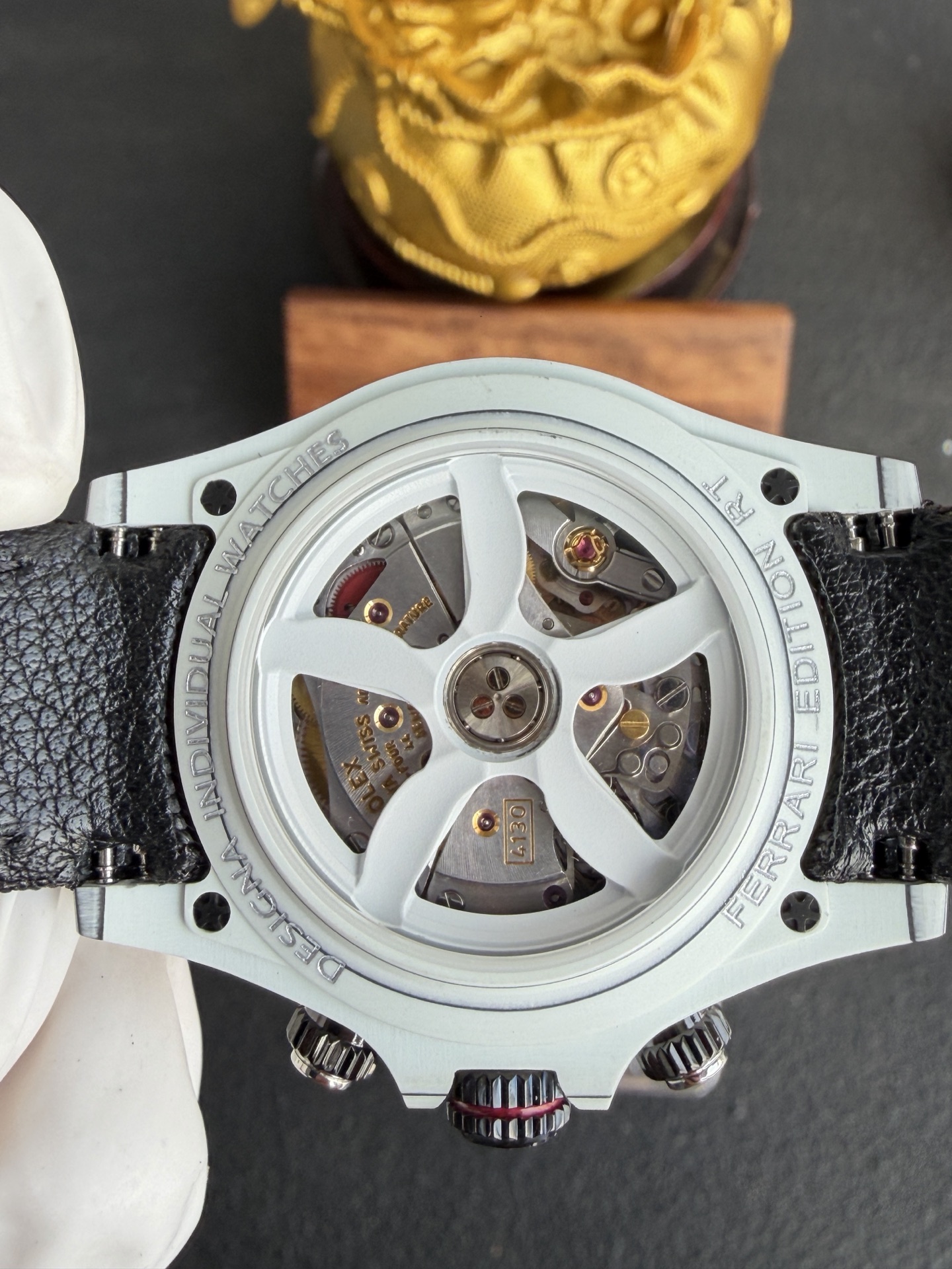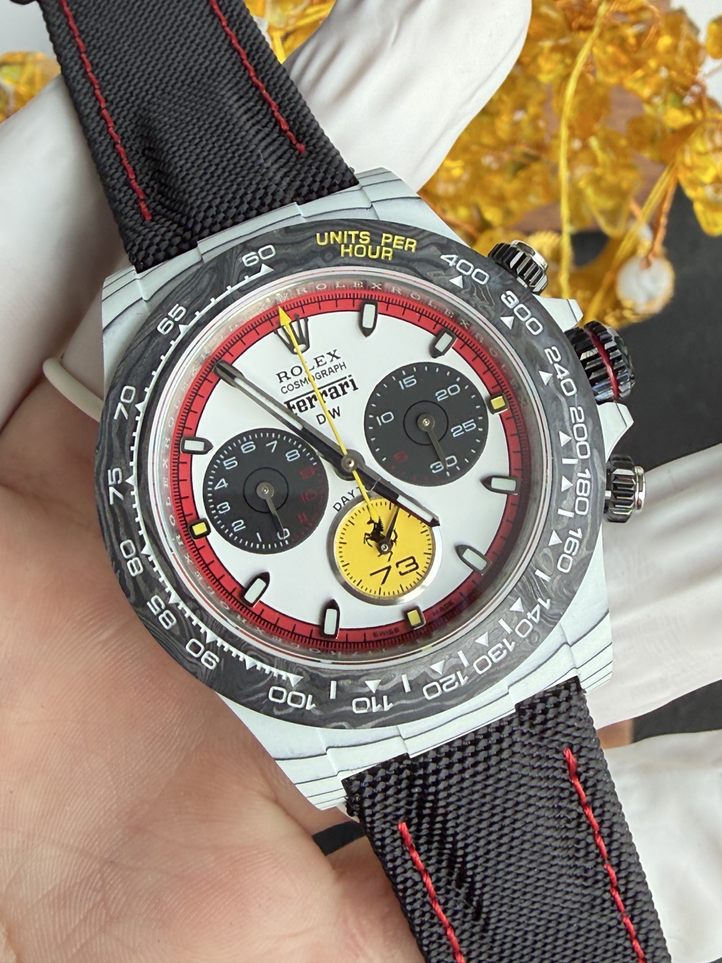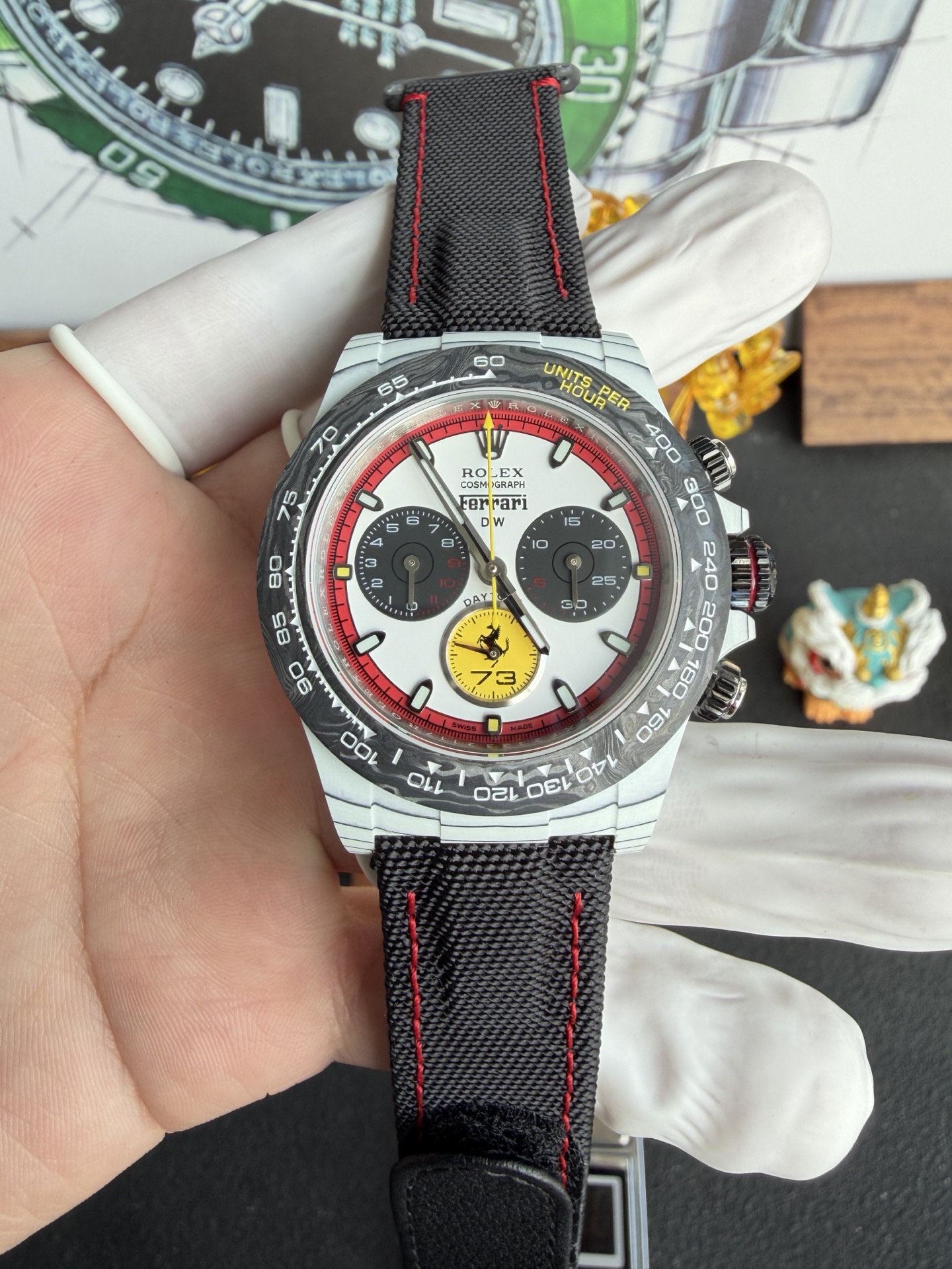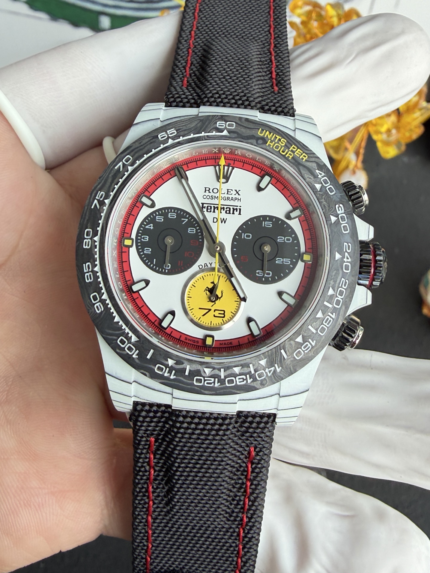 Rolex DiW Daytona Ferrari Edition RT White Quartz TPT Black Carbon Bezel Super Clone 40mm