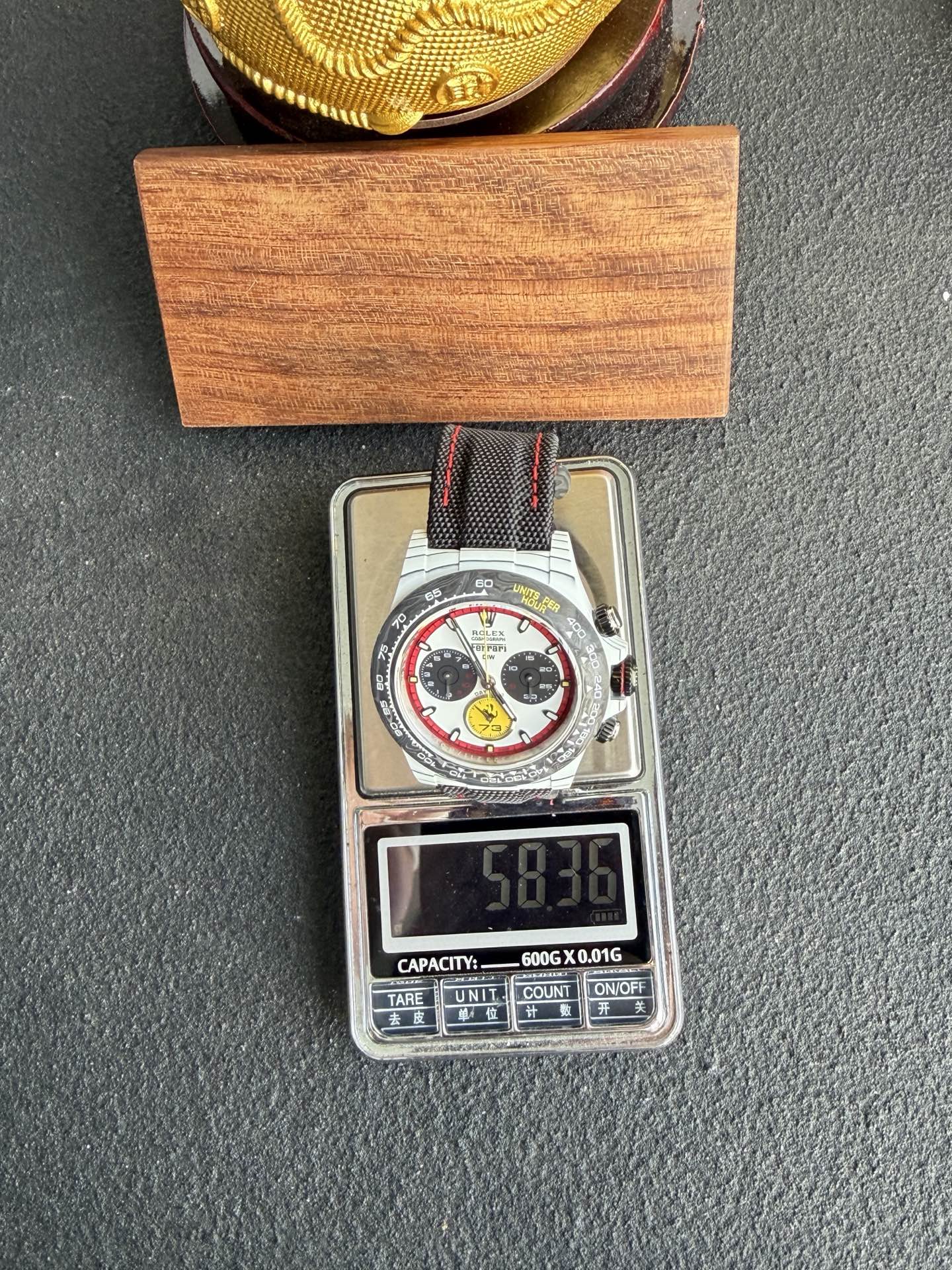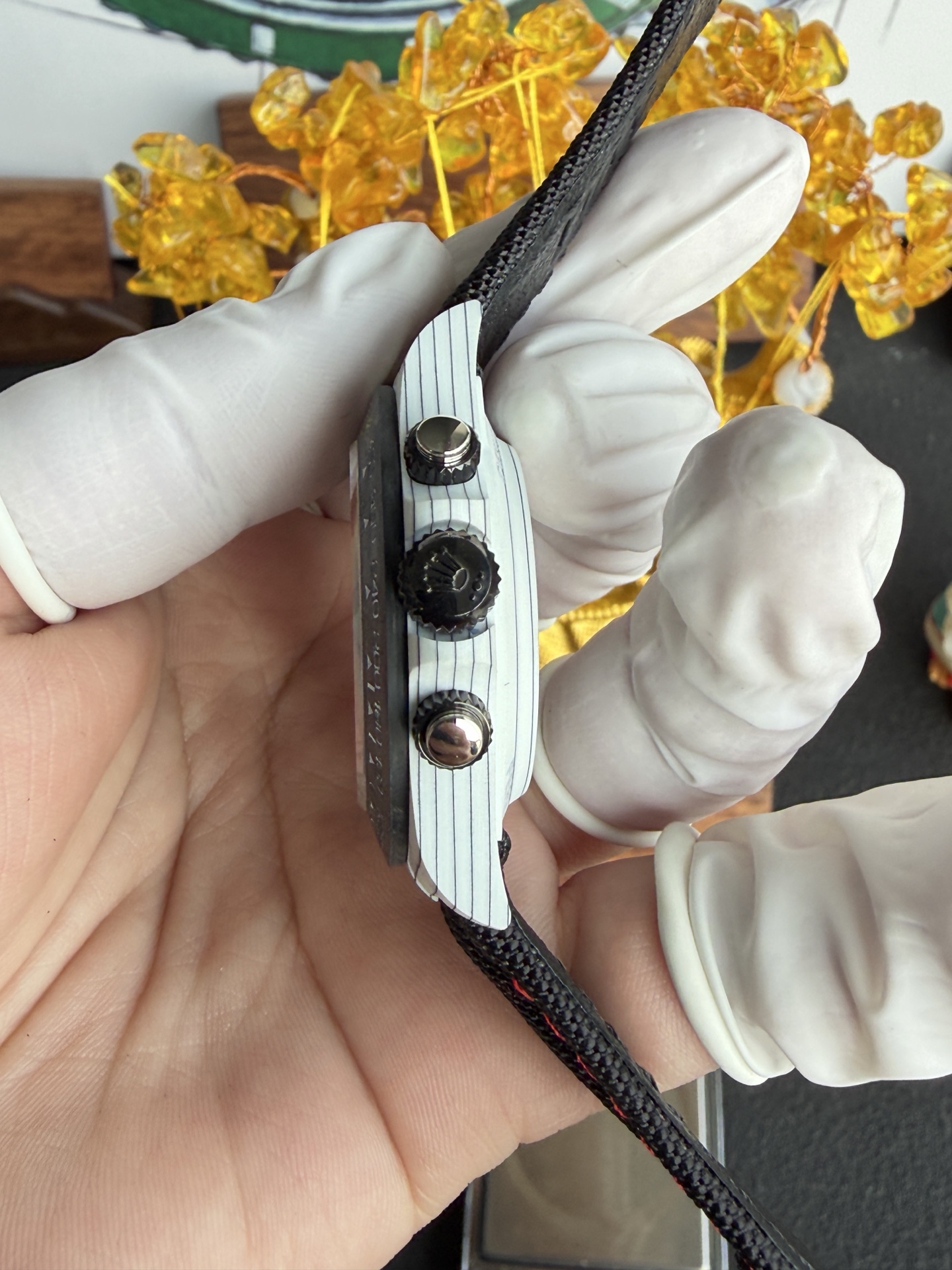 Video of the Rolex DiW Daytona Ferrari Edition RT White Quartz TPT Black Carbon Bezel Super Clone 40mm from N6 Factory: