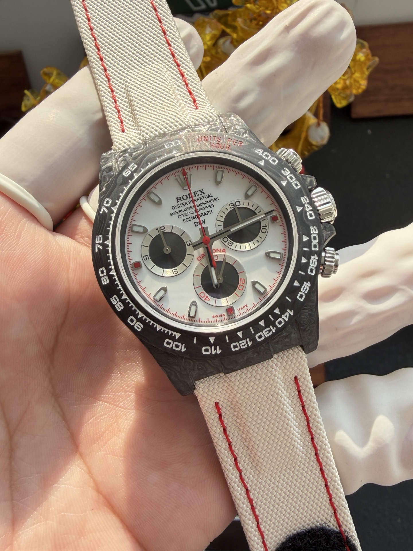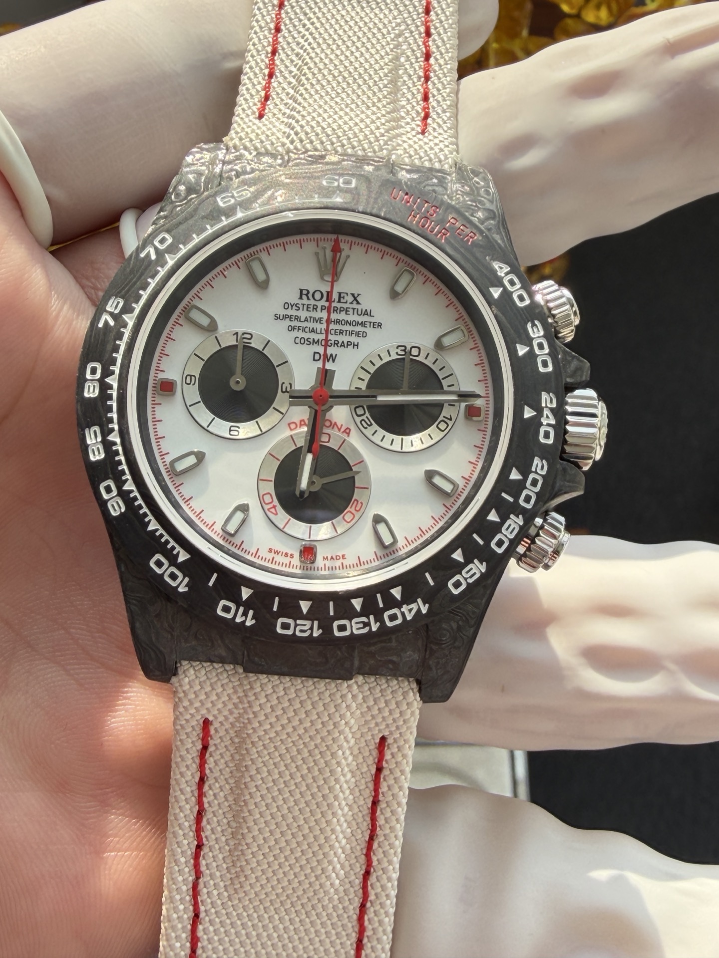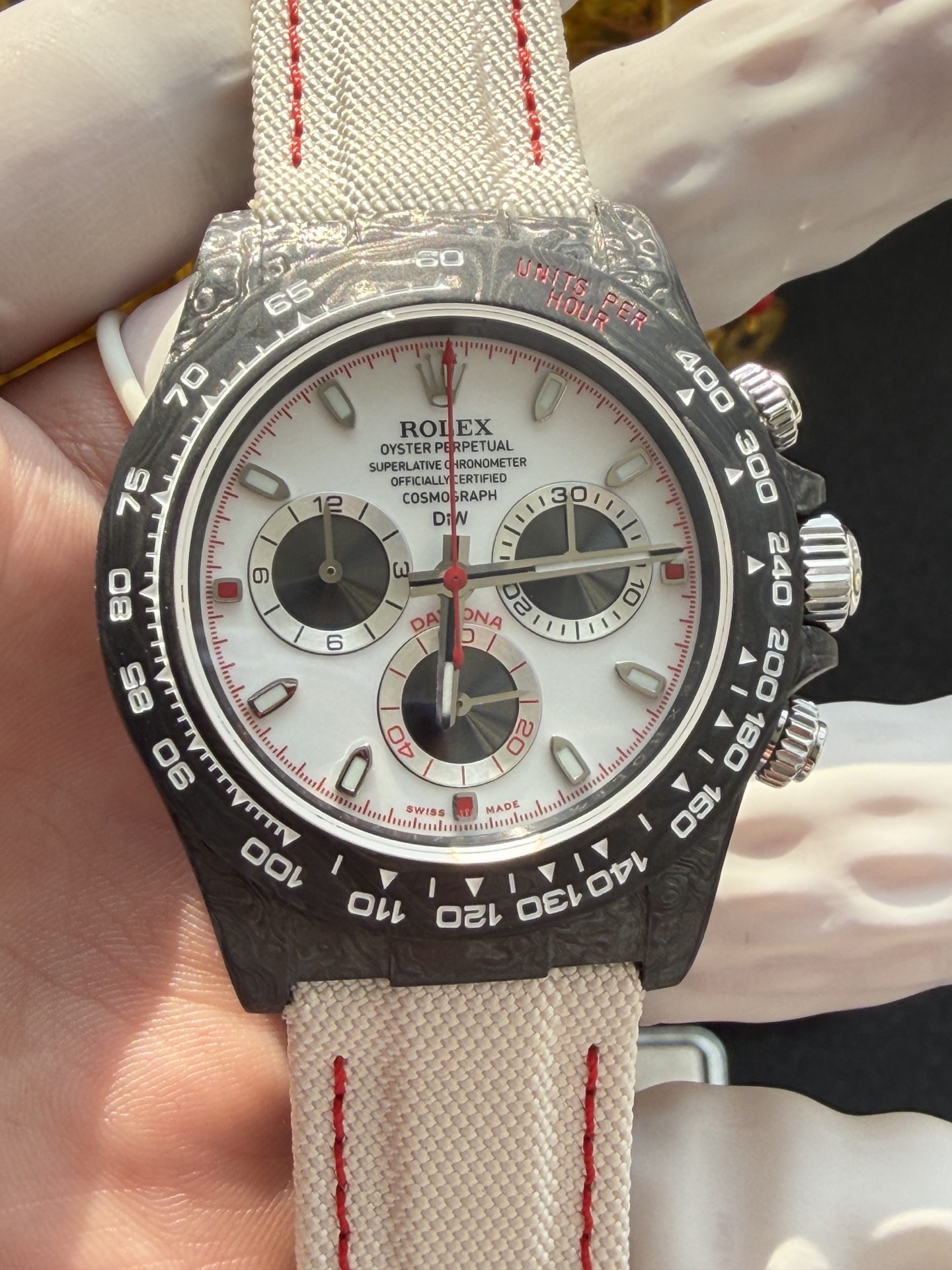 Rolex DiW Daytona SPEEDSTER WHITE Black Carbon Fiber White Dial Best Replica 40mm