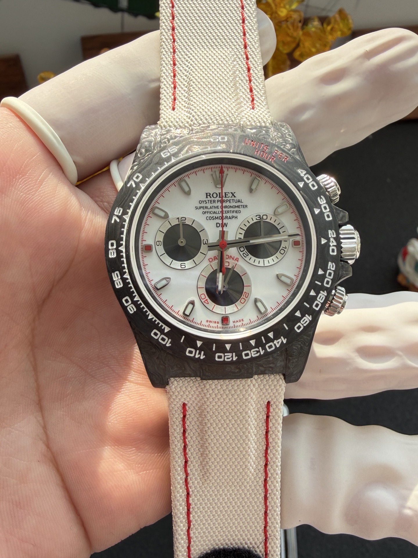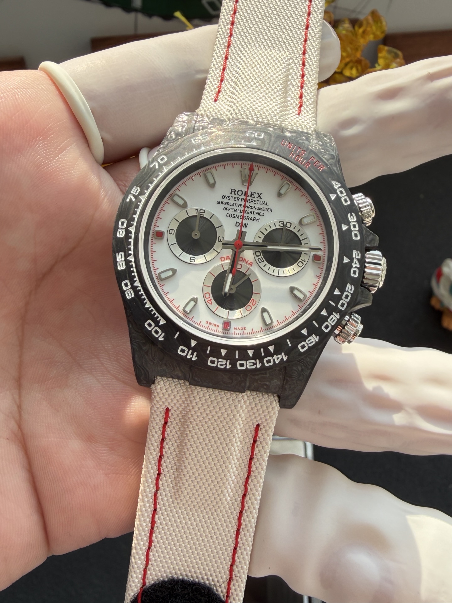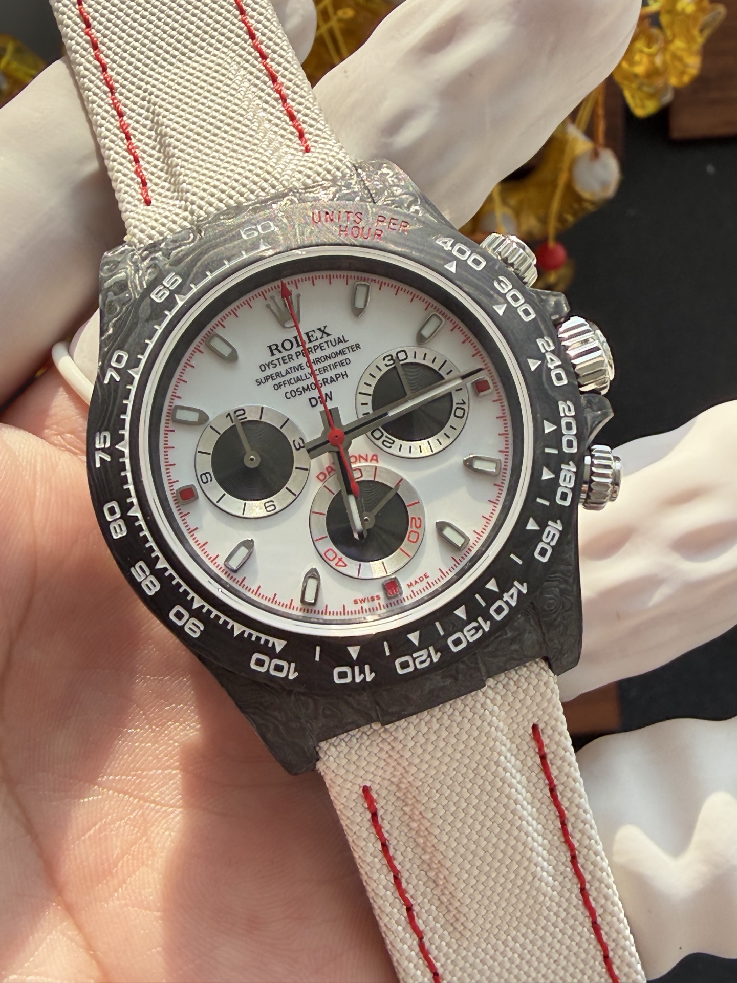 Rolex DiW Daytona SPEEDSTER WHITE Black Carbon Fiber White Dial Best Replica 40mm