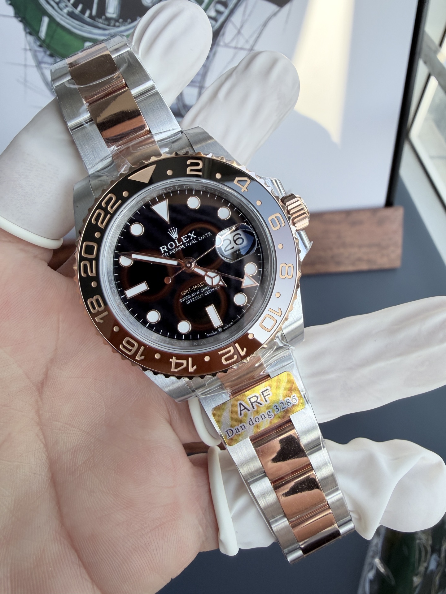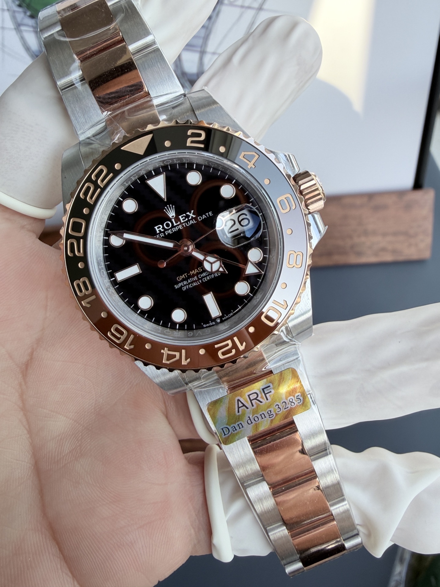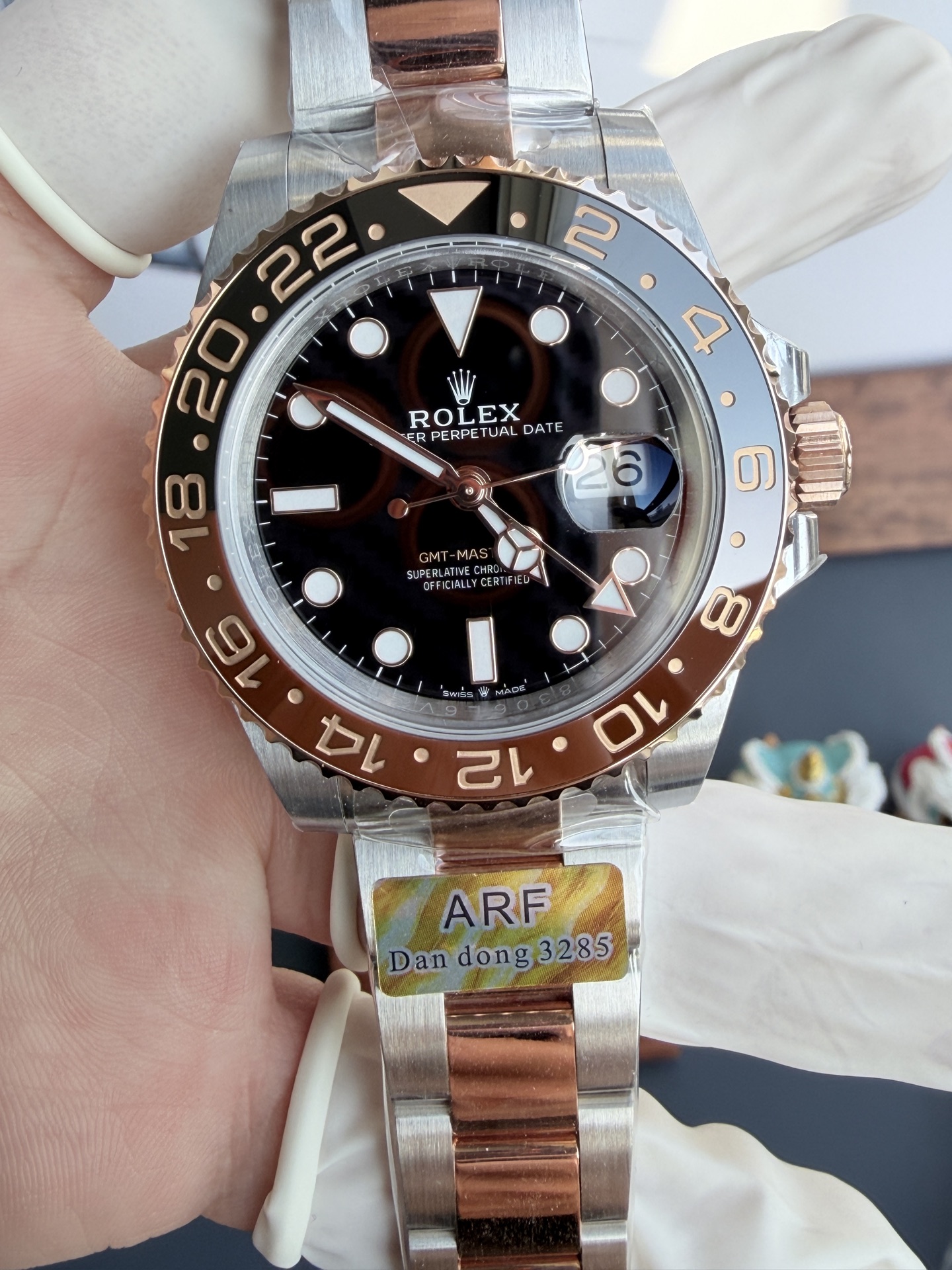 Video of the Rolex GMT-Master II 126711CHNR Two Tone Root Beer Black Dial Oyster Bracelet Super Clone 40mm from AR Factory: