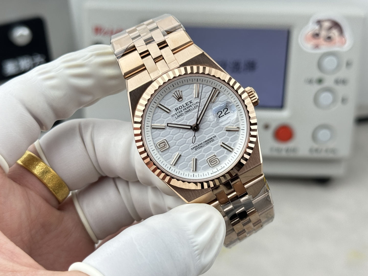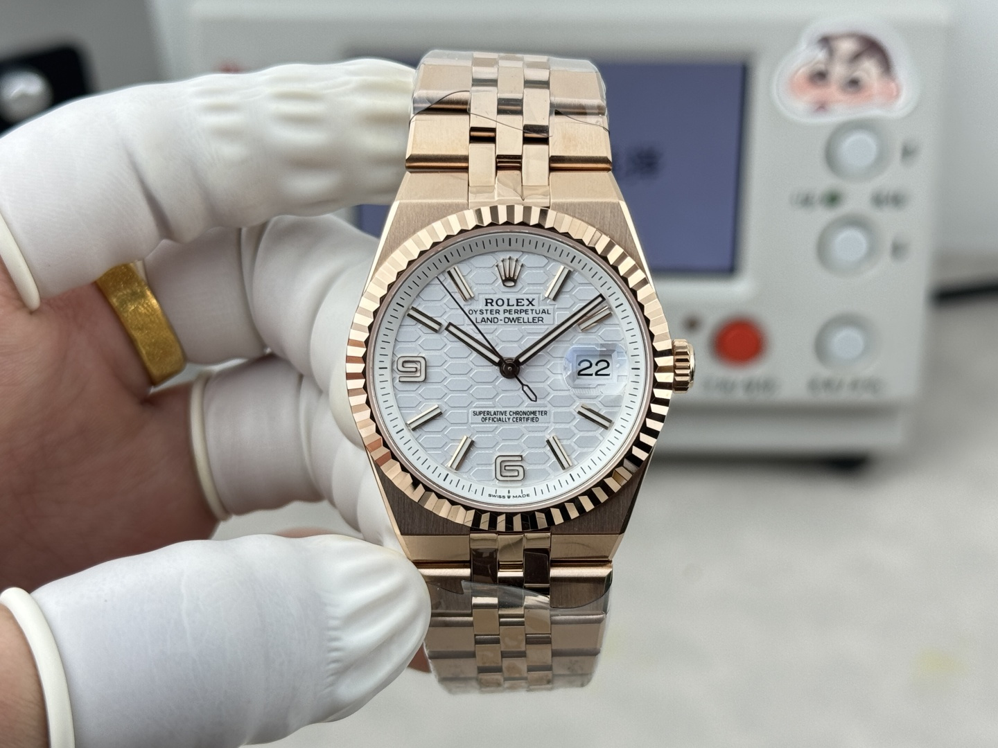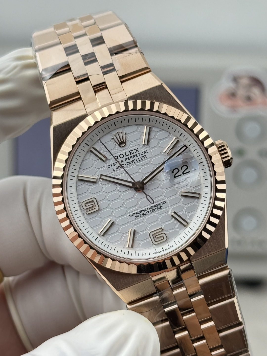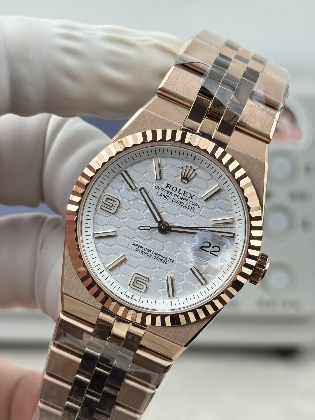 Video of the Rolex Land-Dweller 127235-0001 Rose Gold White Honeycomb-Motif Dial Best Replica 36mm from BP Factory at Py-Luxury: