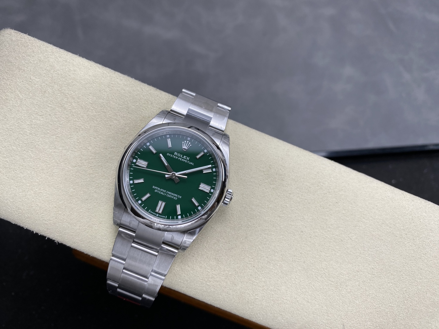 Video of the Rolex Oyster Perpetual 126000-0005 Green Dial 1:1 Best Replica 36mm from VS Factory at Py-Luxury:
