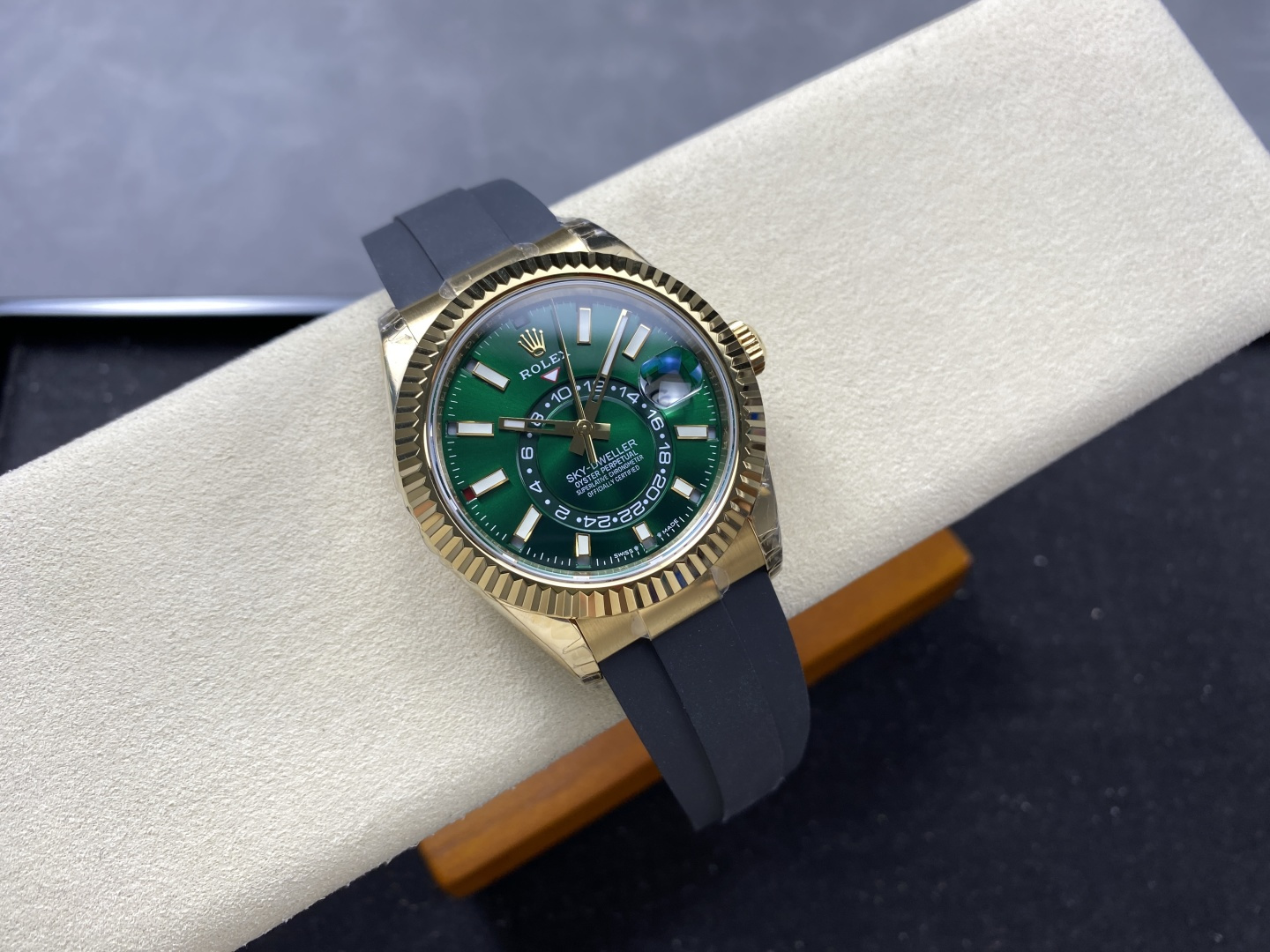 Rolex Sky-Dweller 336238-0004 Yellow Gold Green Dial Oysterflex Bracelet Best Replica 42mm