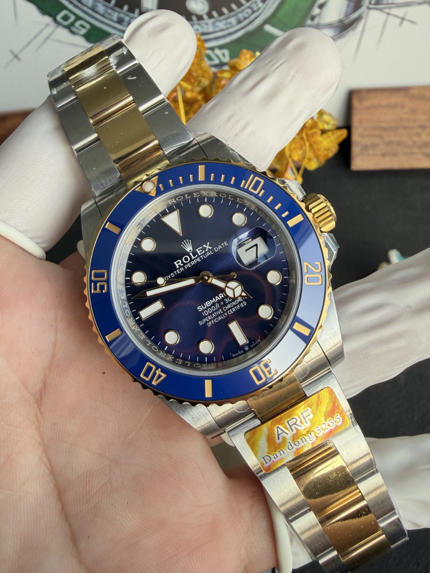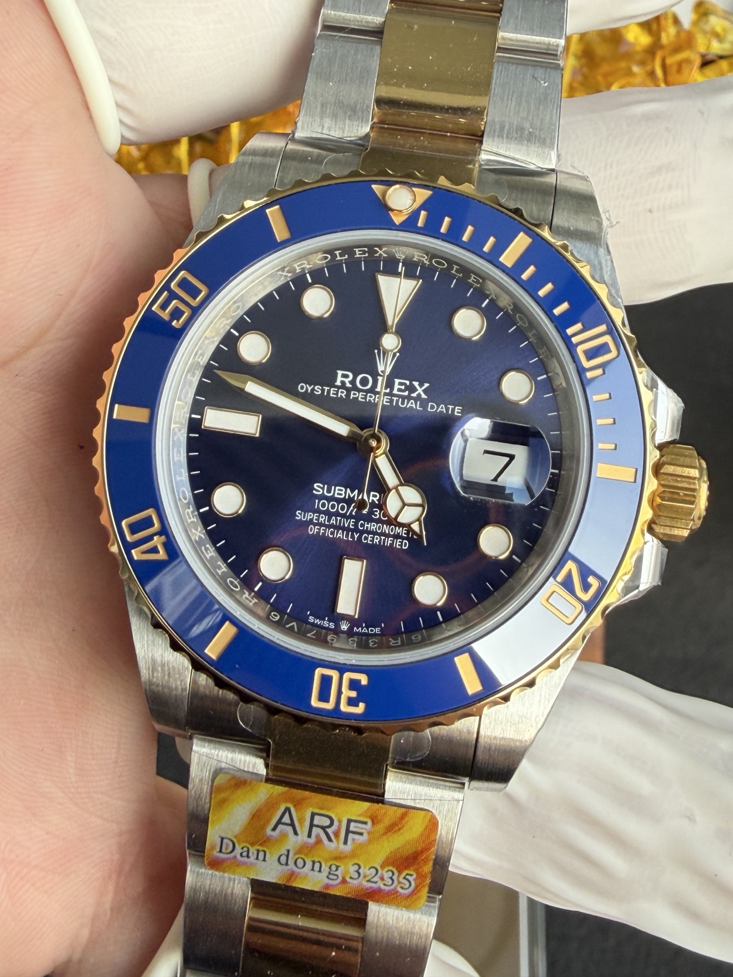Video of the Rolex Submariner Date 126613LB Two Tone Yellow Gold Blue Dial Gained Weight 175g 1:1 Super Clone 41mm from ARF: