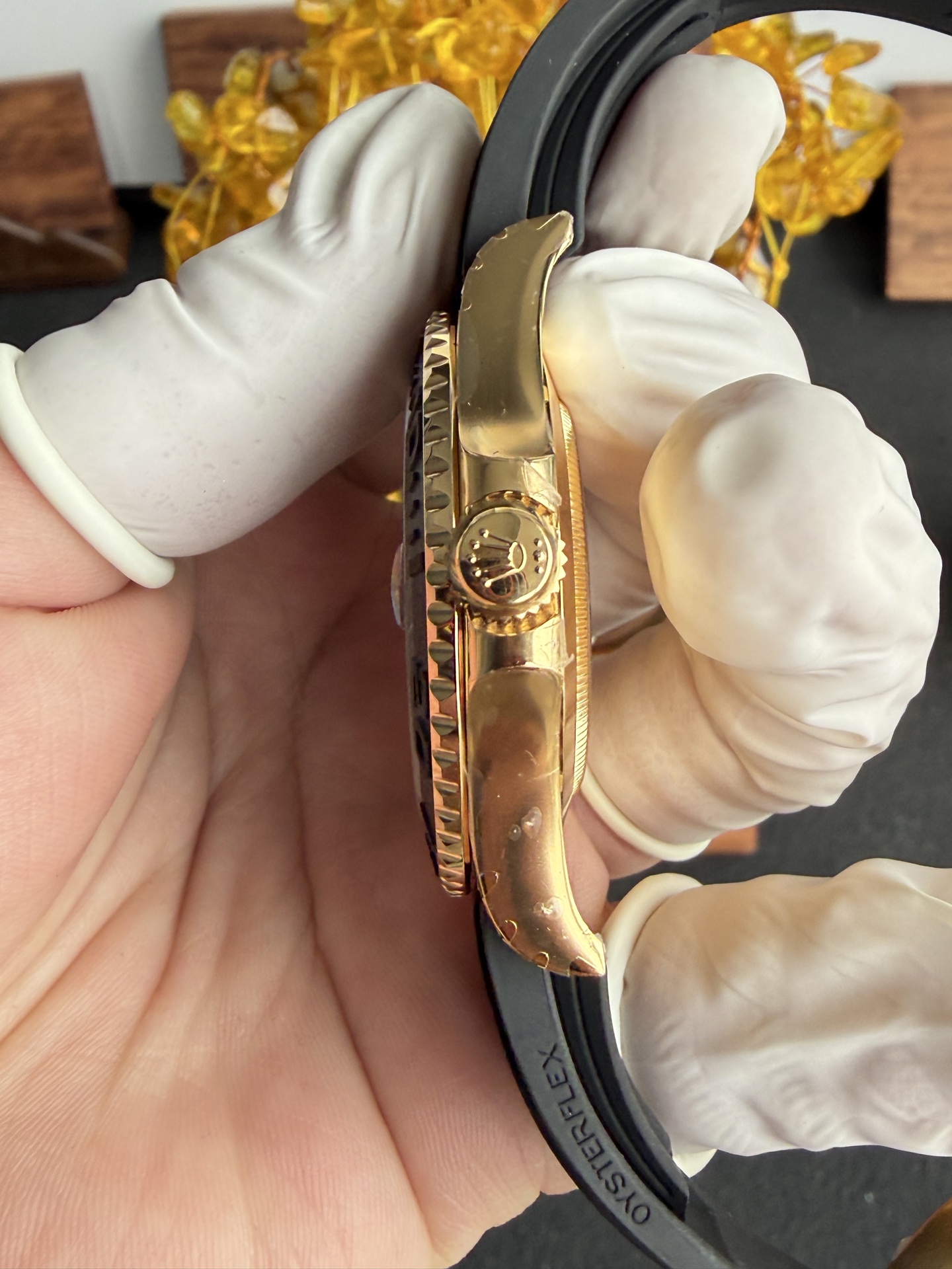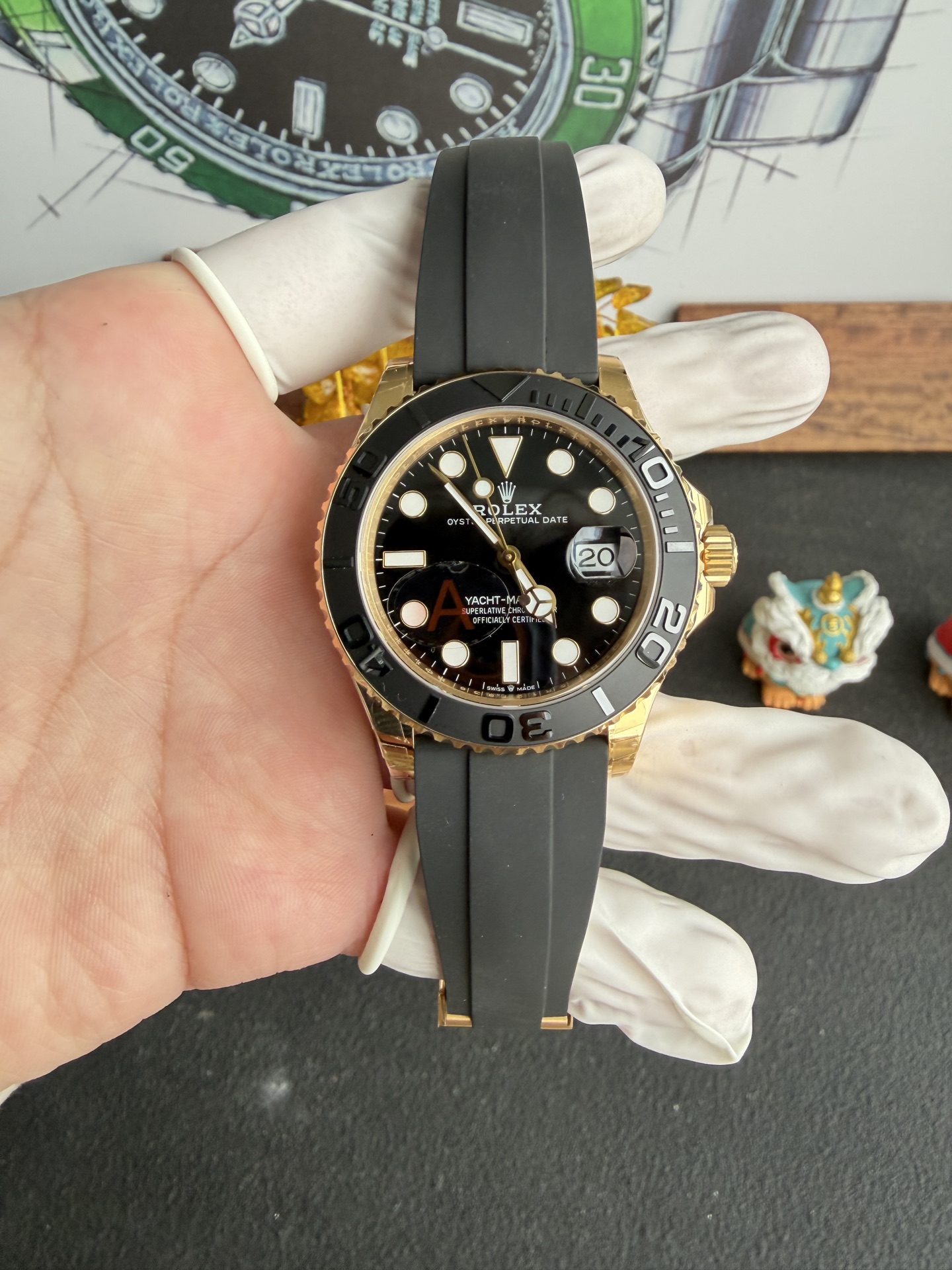 Detailed video of Rolex Yacht-Master 226658 Yellow Gold Black Dial Top Quality Replica 42mm at Py-Luxury: