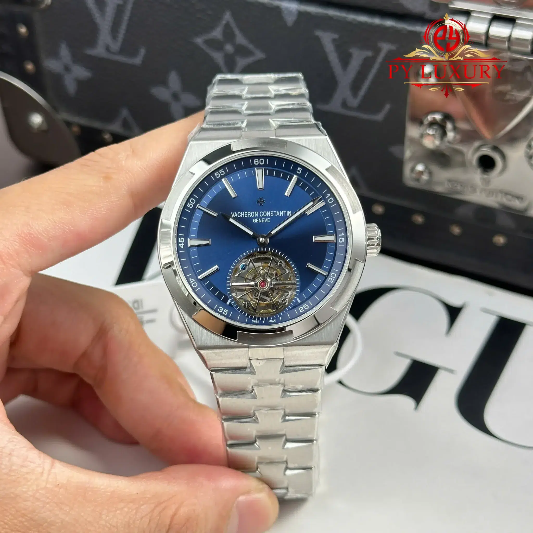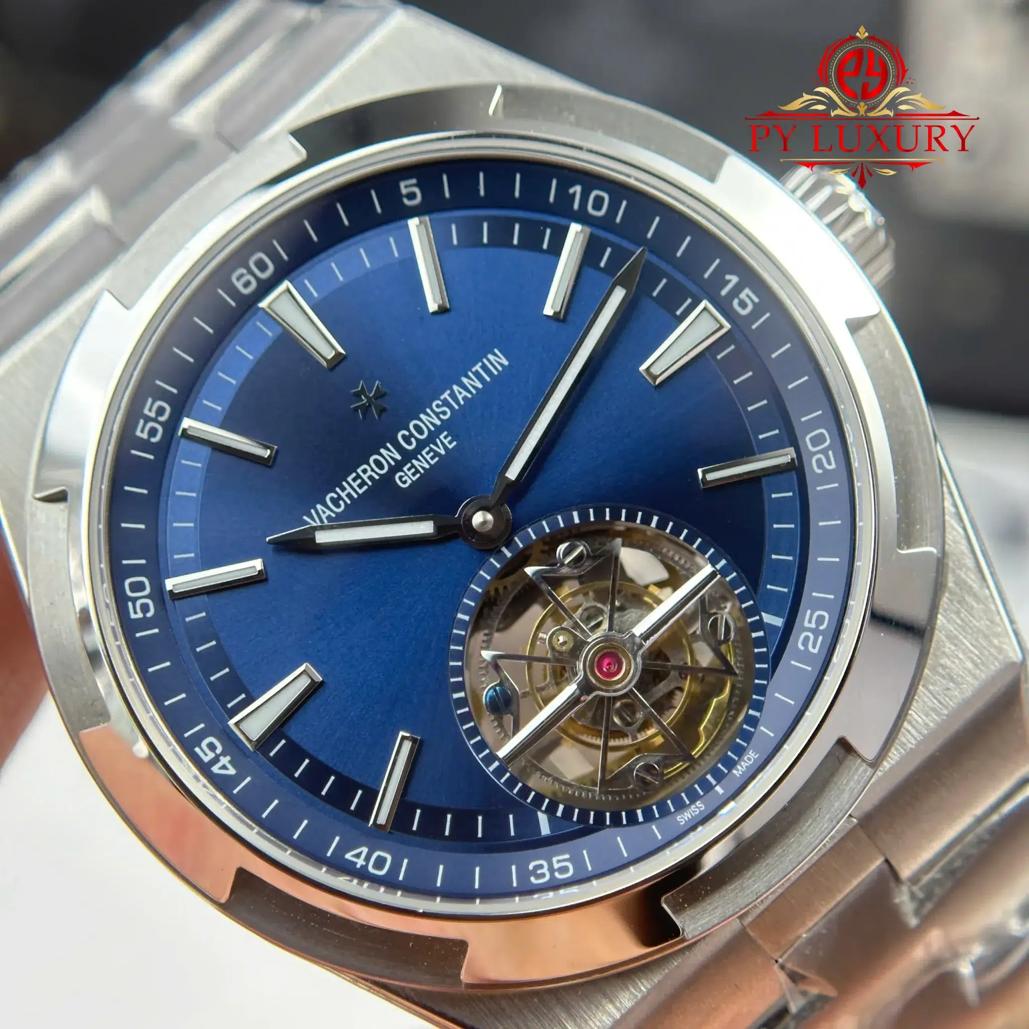Video of the Vacheron Constantin Overseas 6000V Tourbillon Blue Dial Best Replica 42.5mm from BBR Factory at Py-Luxury: