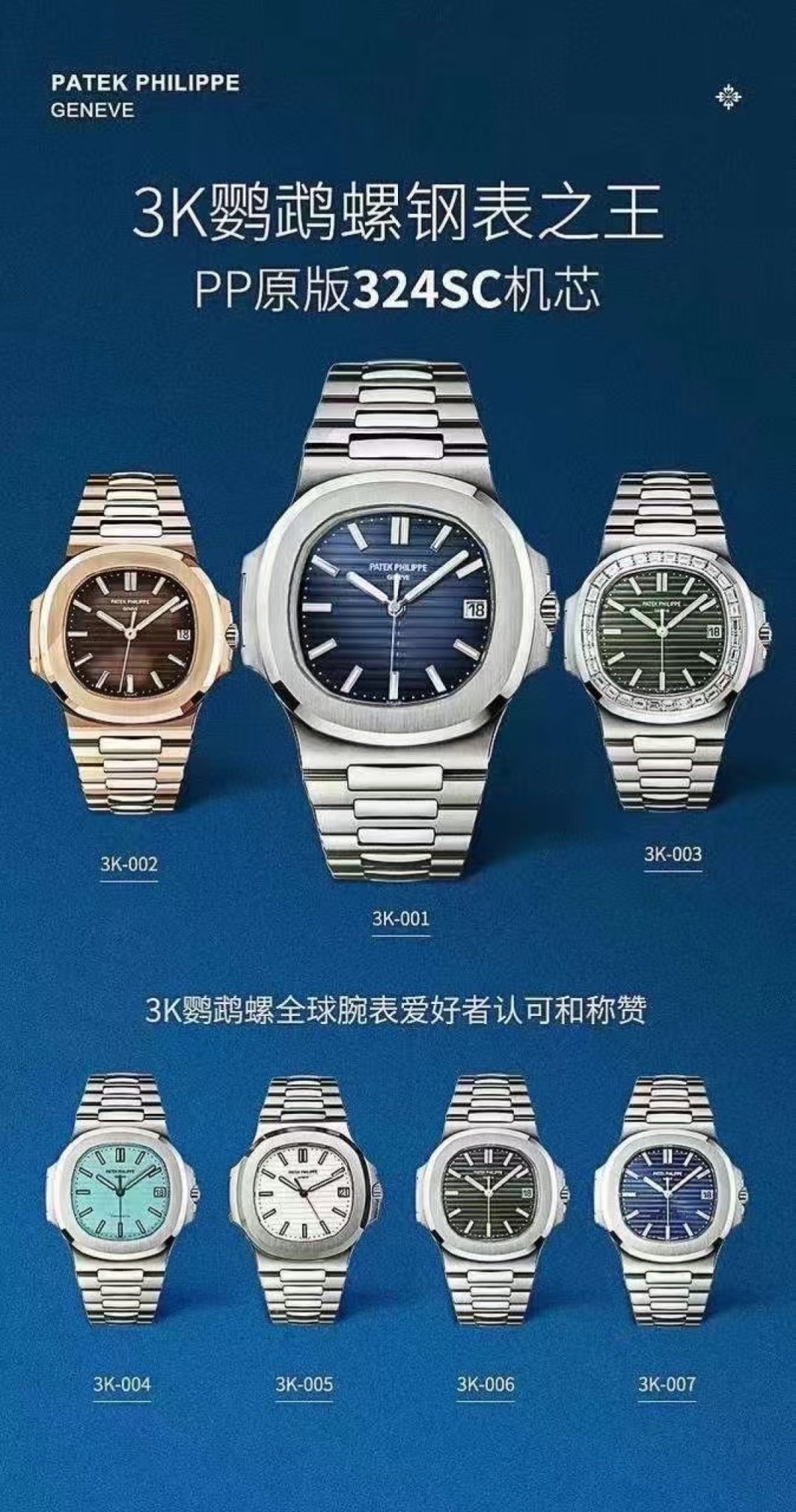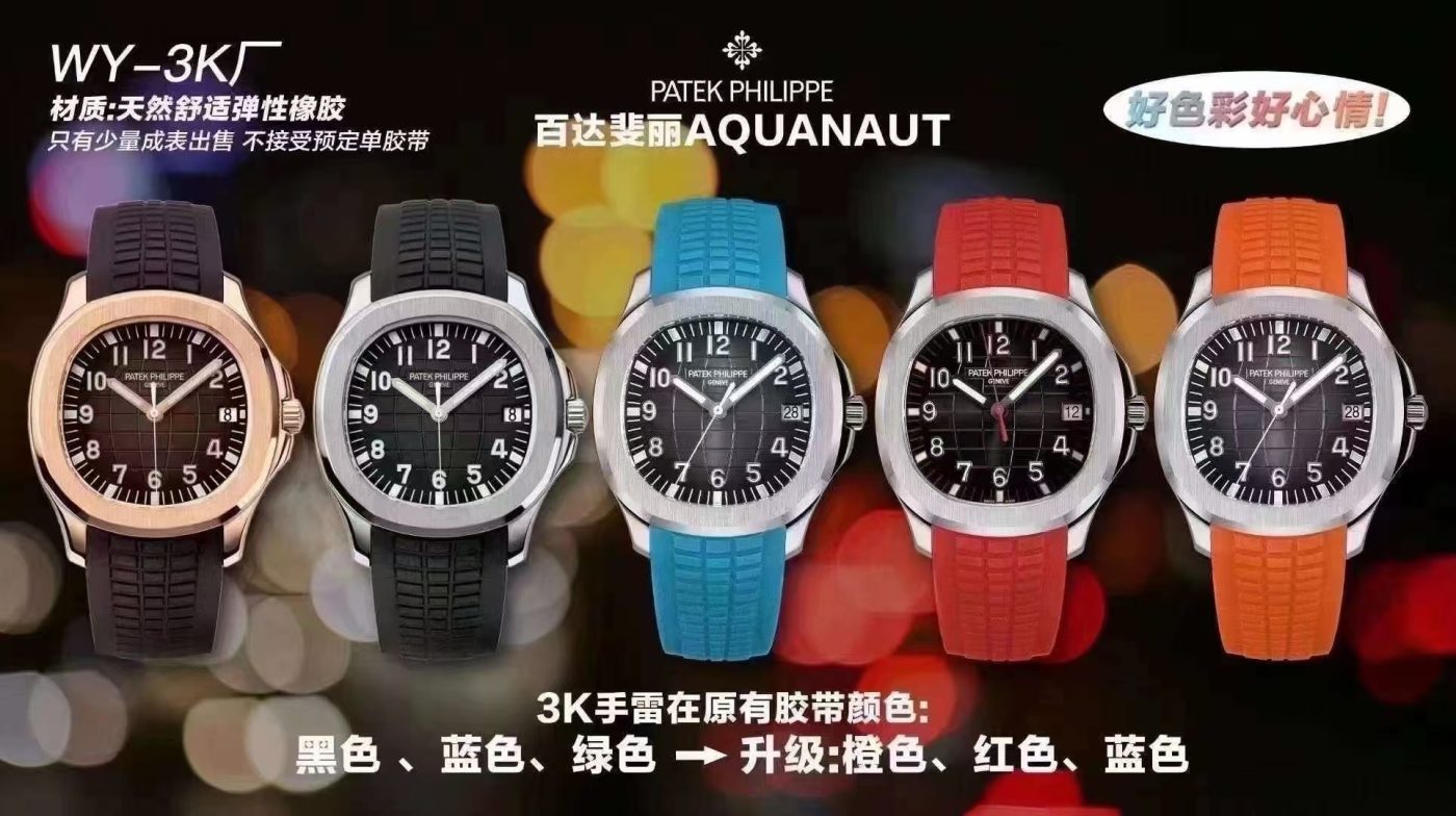 Specializing in Patek Philippe replicas, 3K Factory is celebrated for its Nautilus 5711, Aquanaut 5167, and Aquanaut 5168 models. Their super clones feature the Calibre 324 super clone 1:1 movement, offering exceptional precision and durability. The Nautilus 5711, for example, showcases a perfectly aligned dial with crisp markers and high-quality lume that glows consistently in low light. Using 904L stainless steel and sapphire crystals, 3K Factory ensures their replicas match the original’s weight and durability, making them a top choice for collectors seeking refined timepieces.